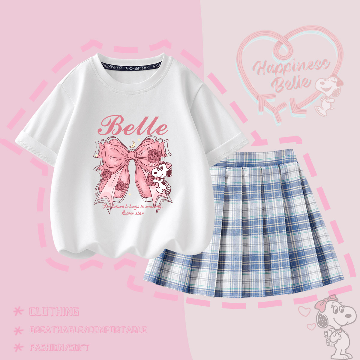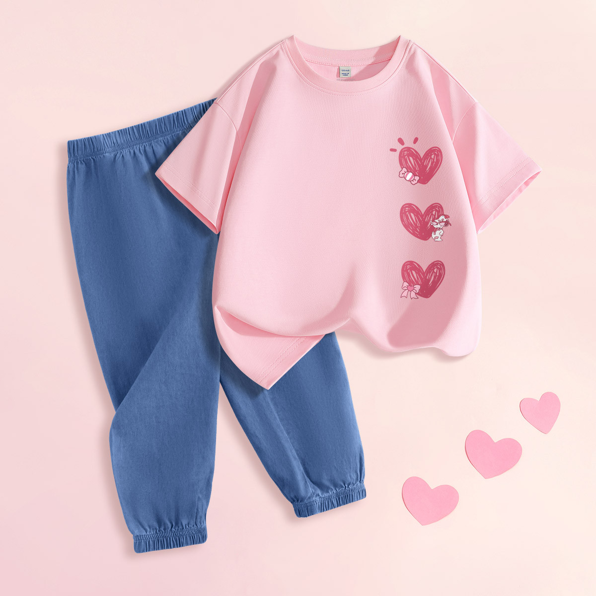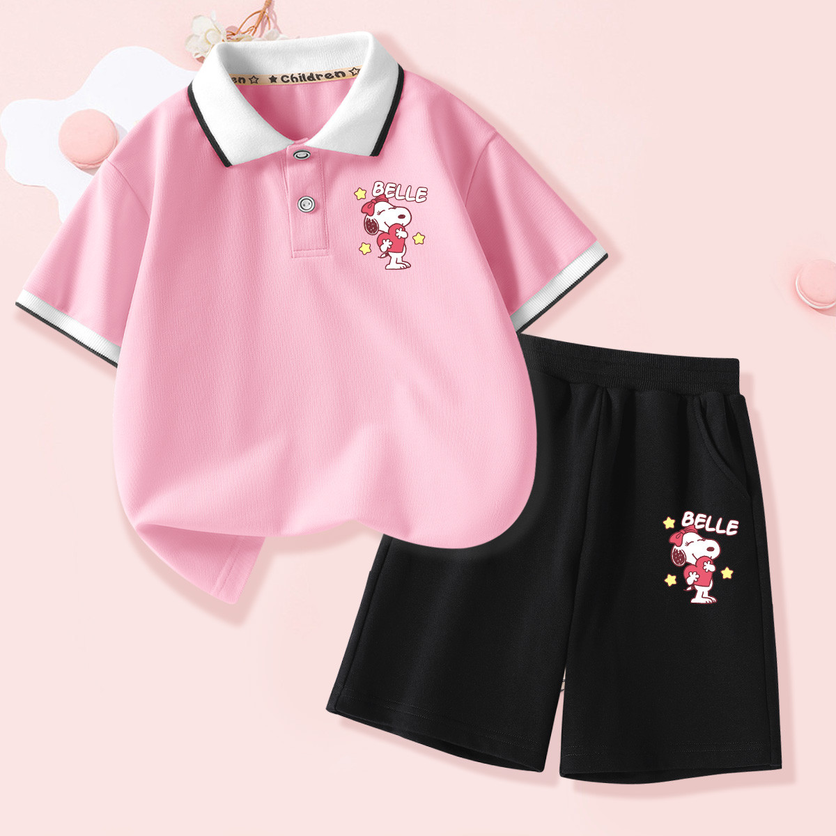 巴布豆 儿童夏款套装 粉色 100码