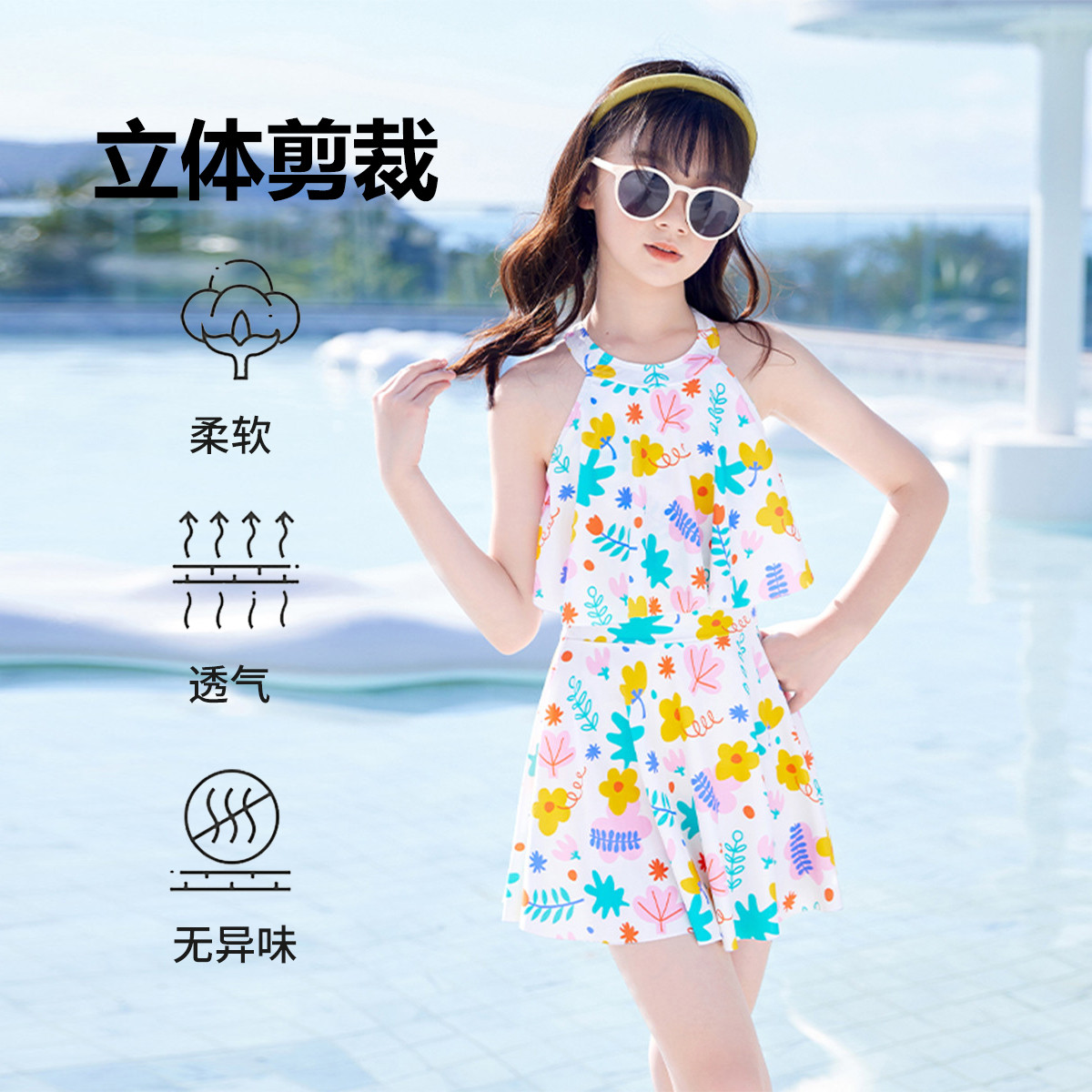 儿童泳衣女童连体裙式泳衣中大童专业训练海边度假游泳池玩水泳衣 128531
