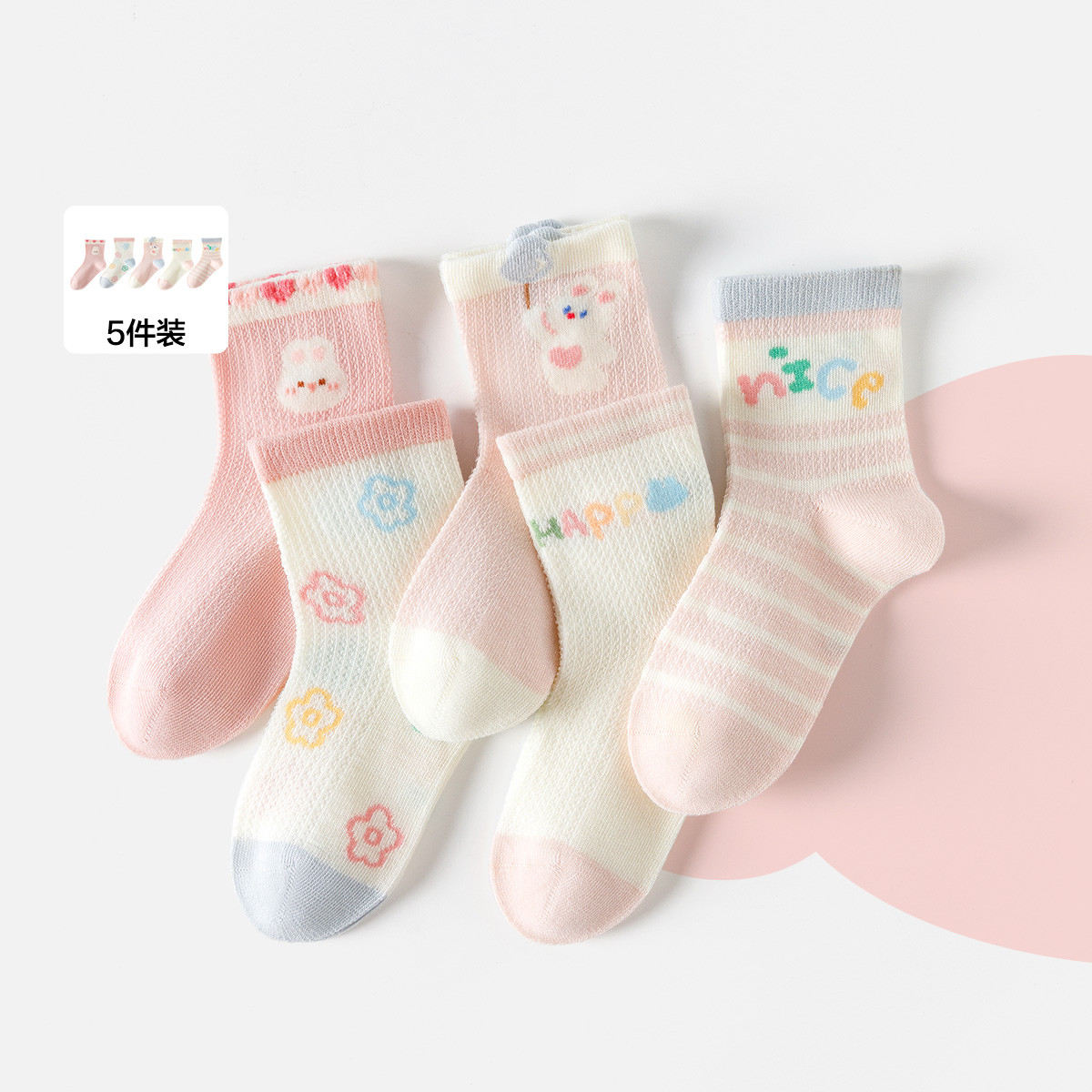 五双装宝宝袜子春秋网眼袜薄款透气儿童短袜防着凉男童女童弹力袜 305733