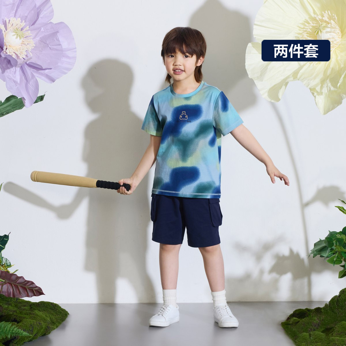 Gap男童2024春秋季纯棉扎染小熊logo短袖T恤短裤运动套装890523 328218