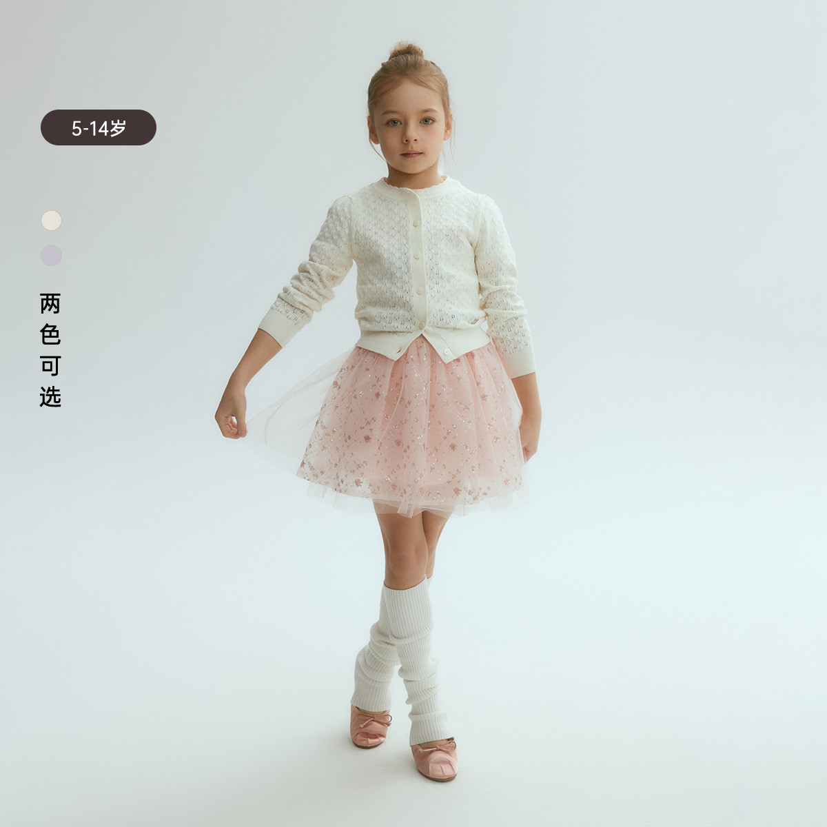 小熊童装夏季女童全棉镂空轻薄开衫毛衣 717953