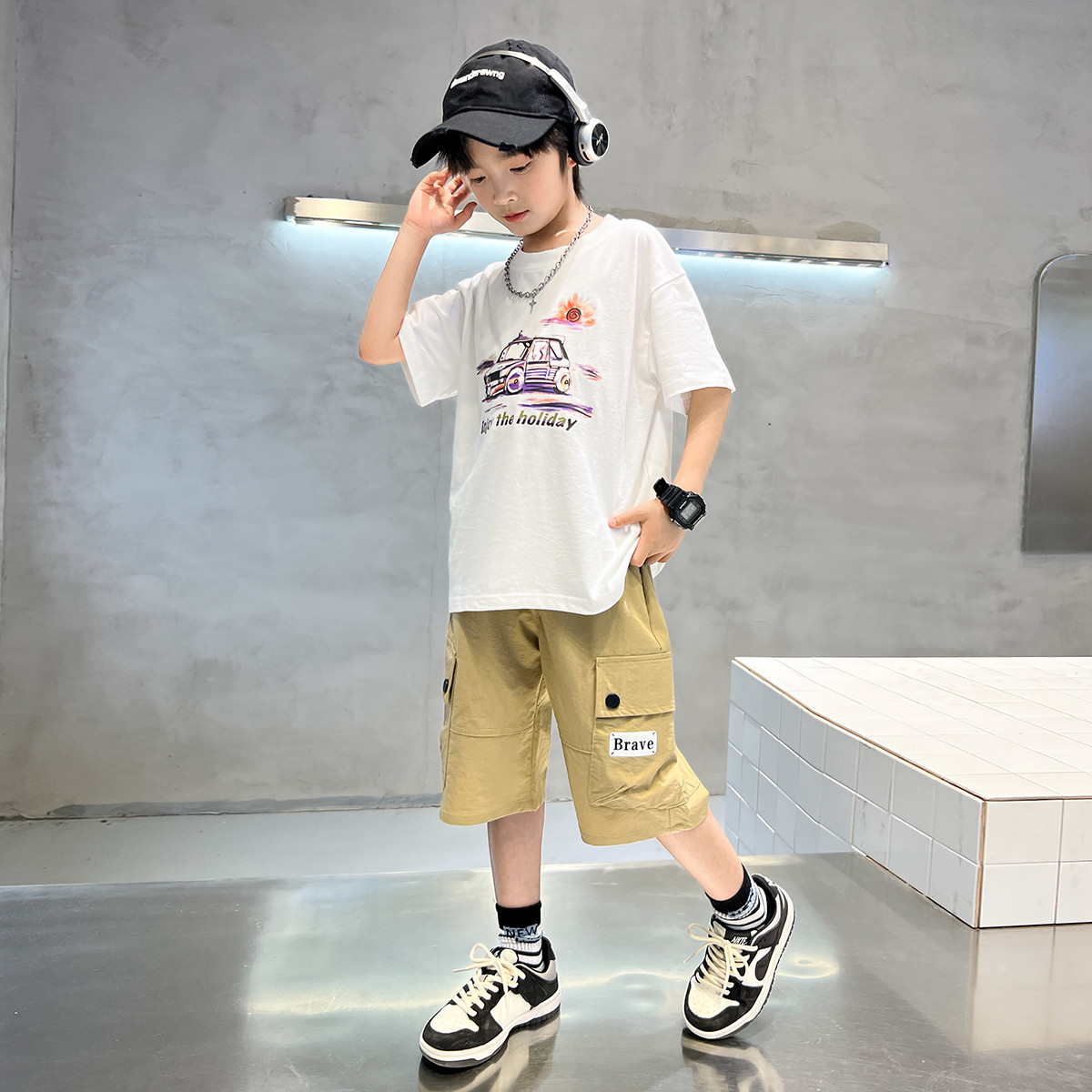 男童套装2024夏装两件套儿童男孩洋气百搭上衣裤子两件套 492495