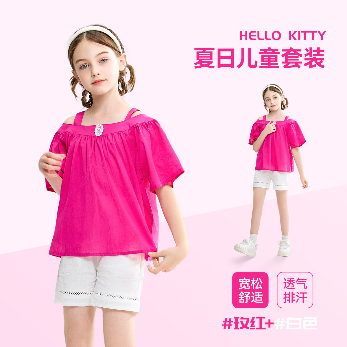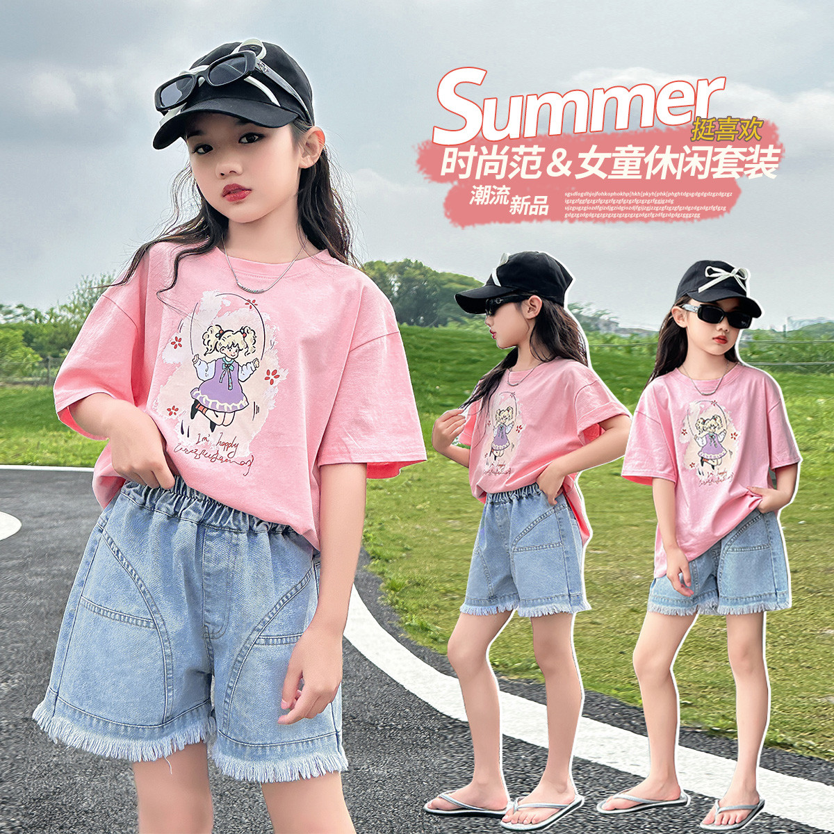 女童套装夏季2024儿童短袖两件套休闲透气中大童女孩衣服童装 373839
