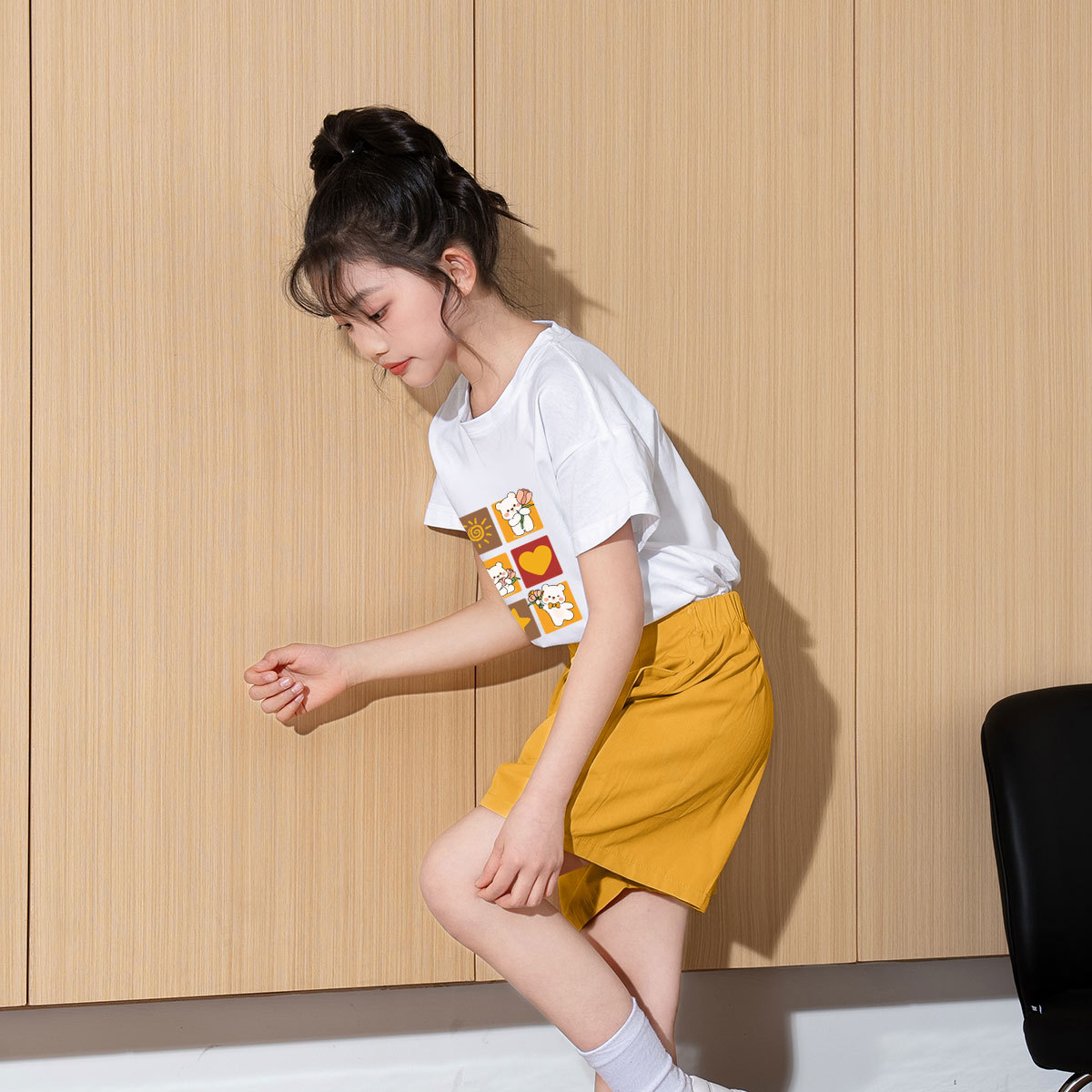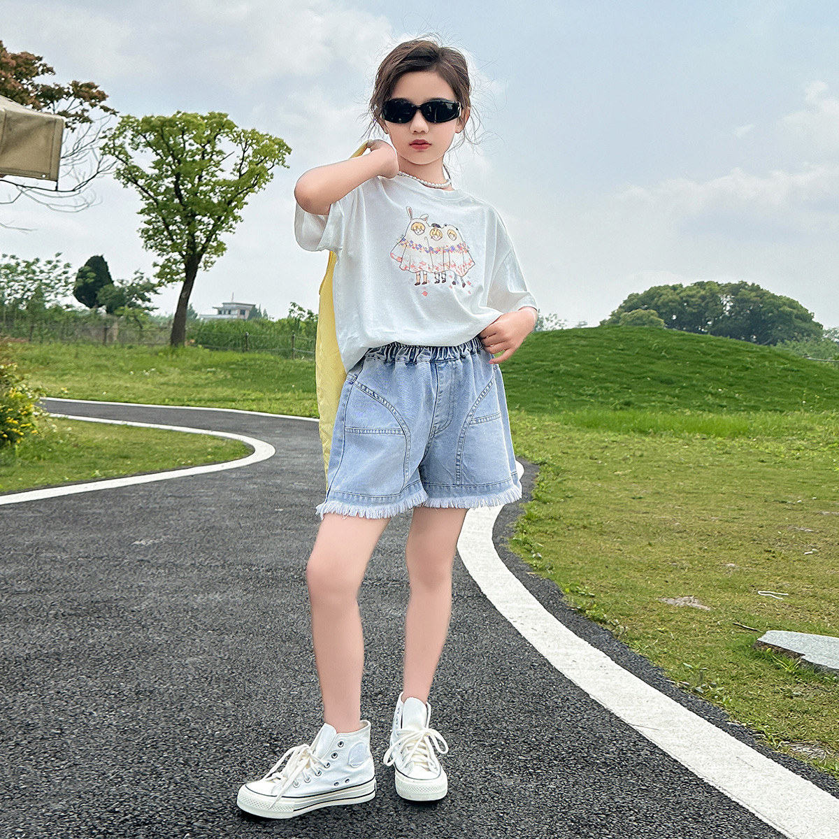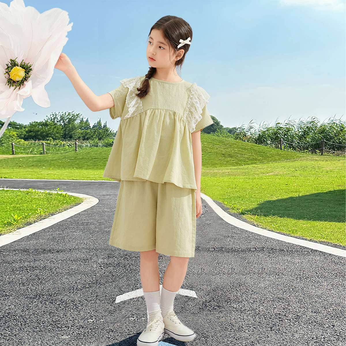 女童套装2024夏季小清新森系套装大童儿童短袖短裤两件套 353999