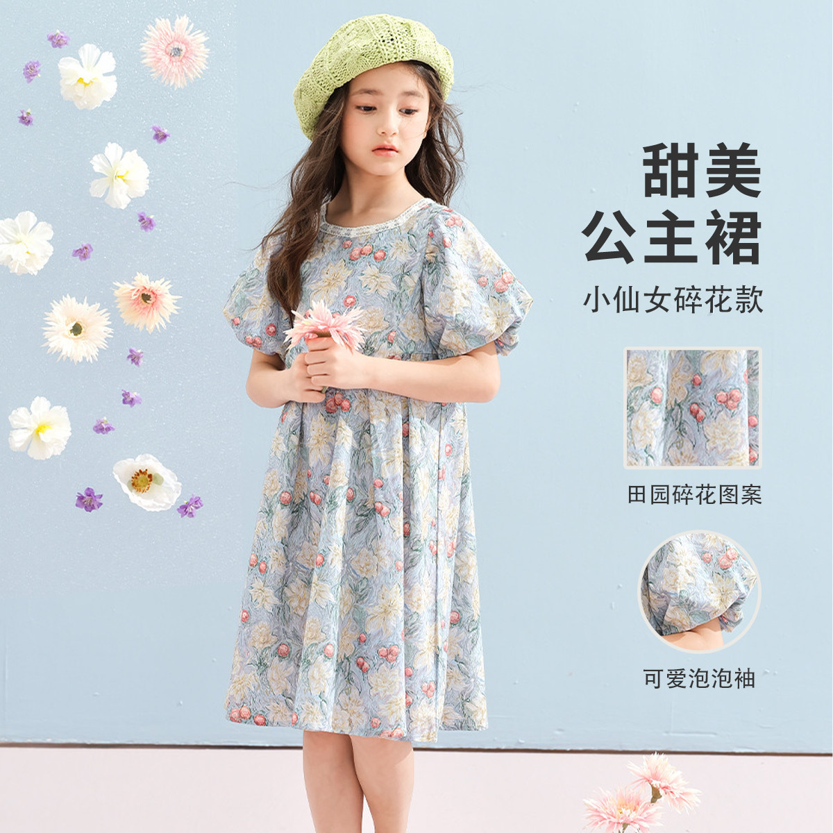女童连衣裙夏款可爱公主裙甜美时尚女童碎花纯棉连衣裙薄款清爽 313039