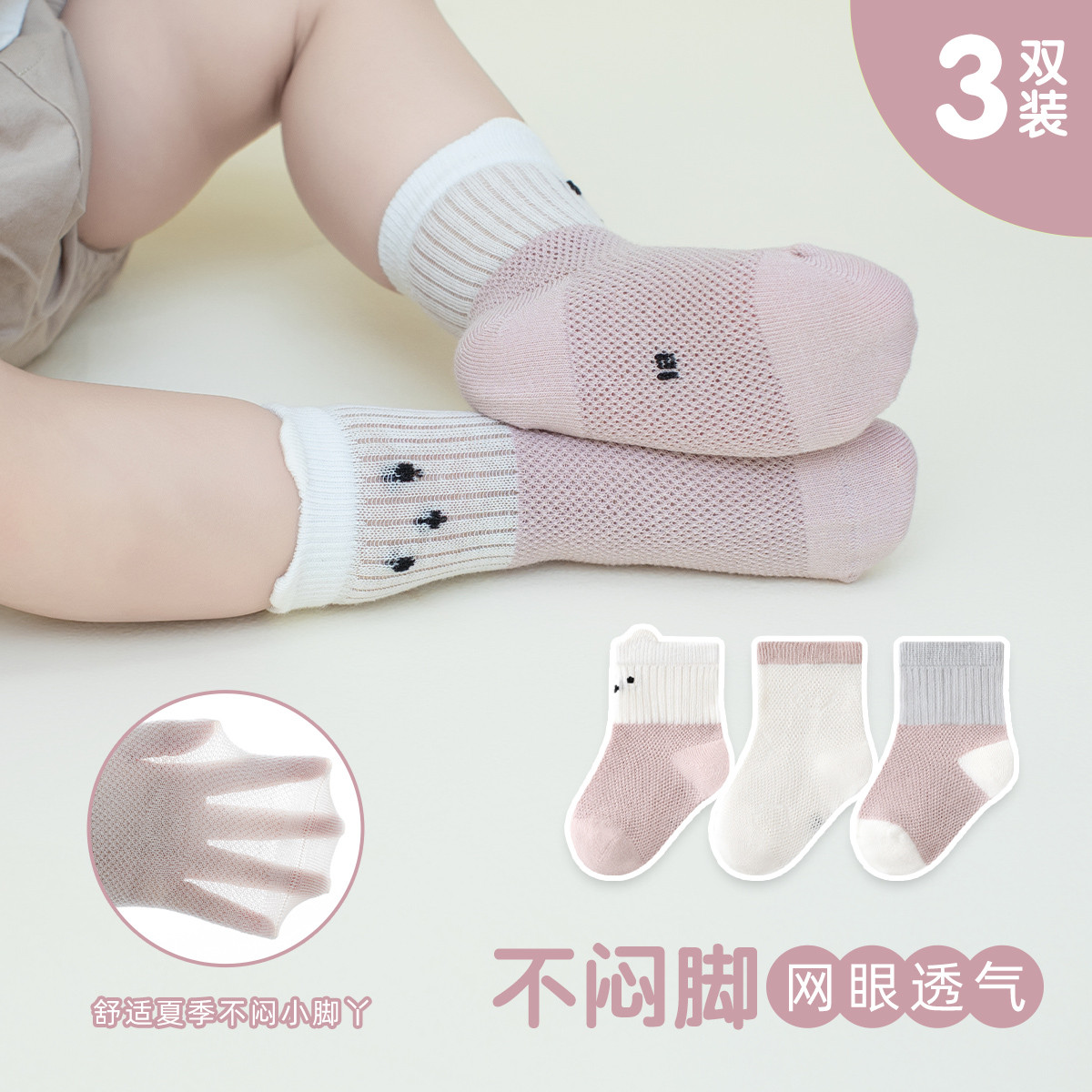 小301网眼短袜抗菌男女童宝宝透气薄款儿童袜子3双 759749