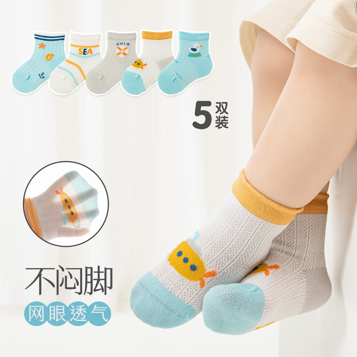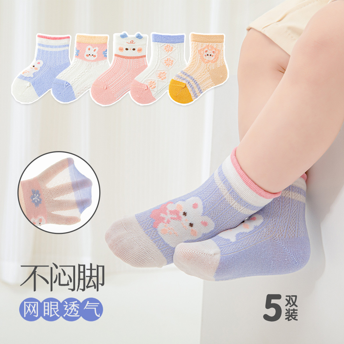 婴童袜子5双装男女童四季袜子中筒袜薄款舒适男女宝宝透气袜子 782607