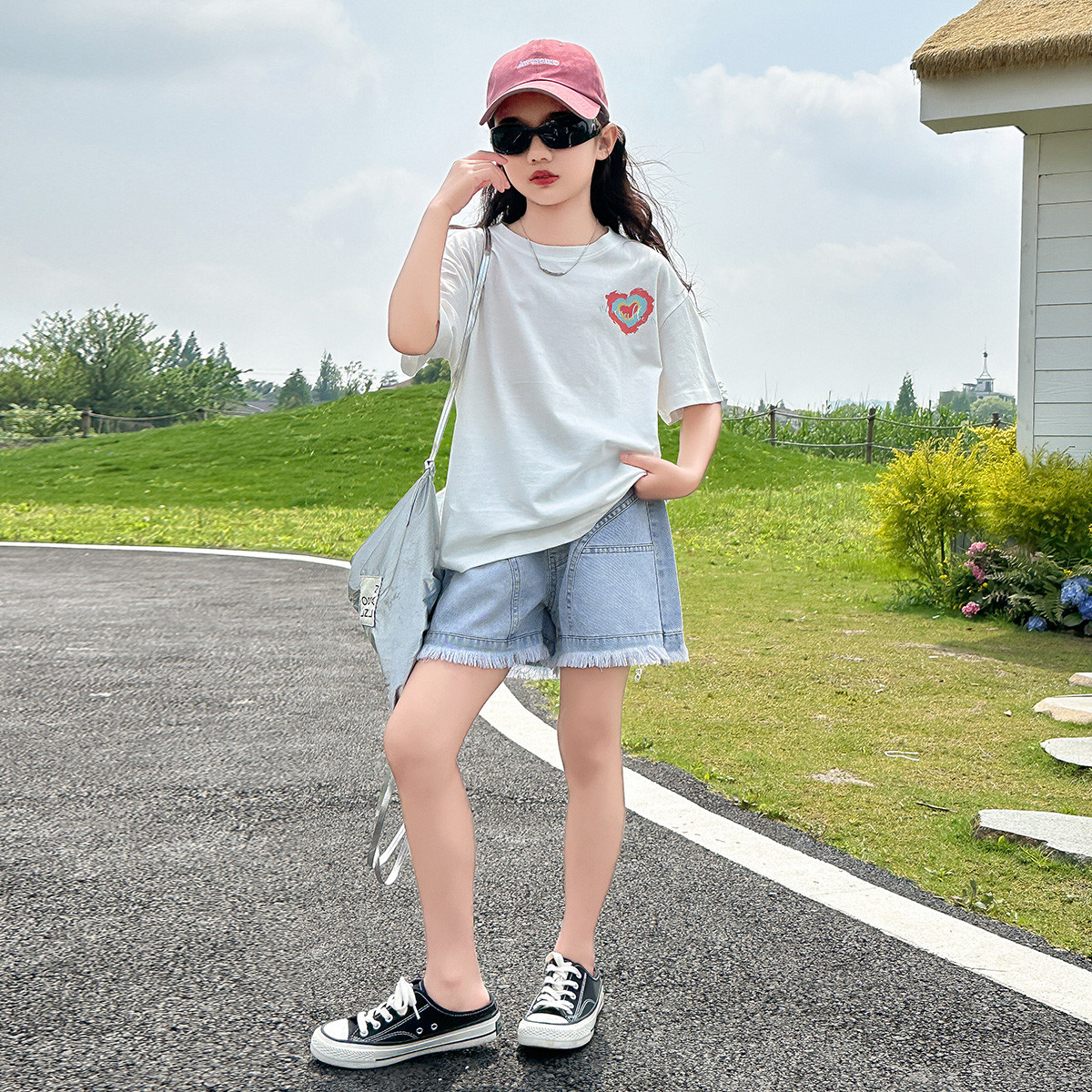 夏季女童短袖T恤短裤套装时尚甜美轻薄两件套中大童装 213583