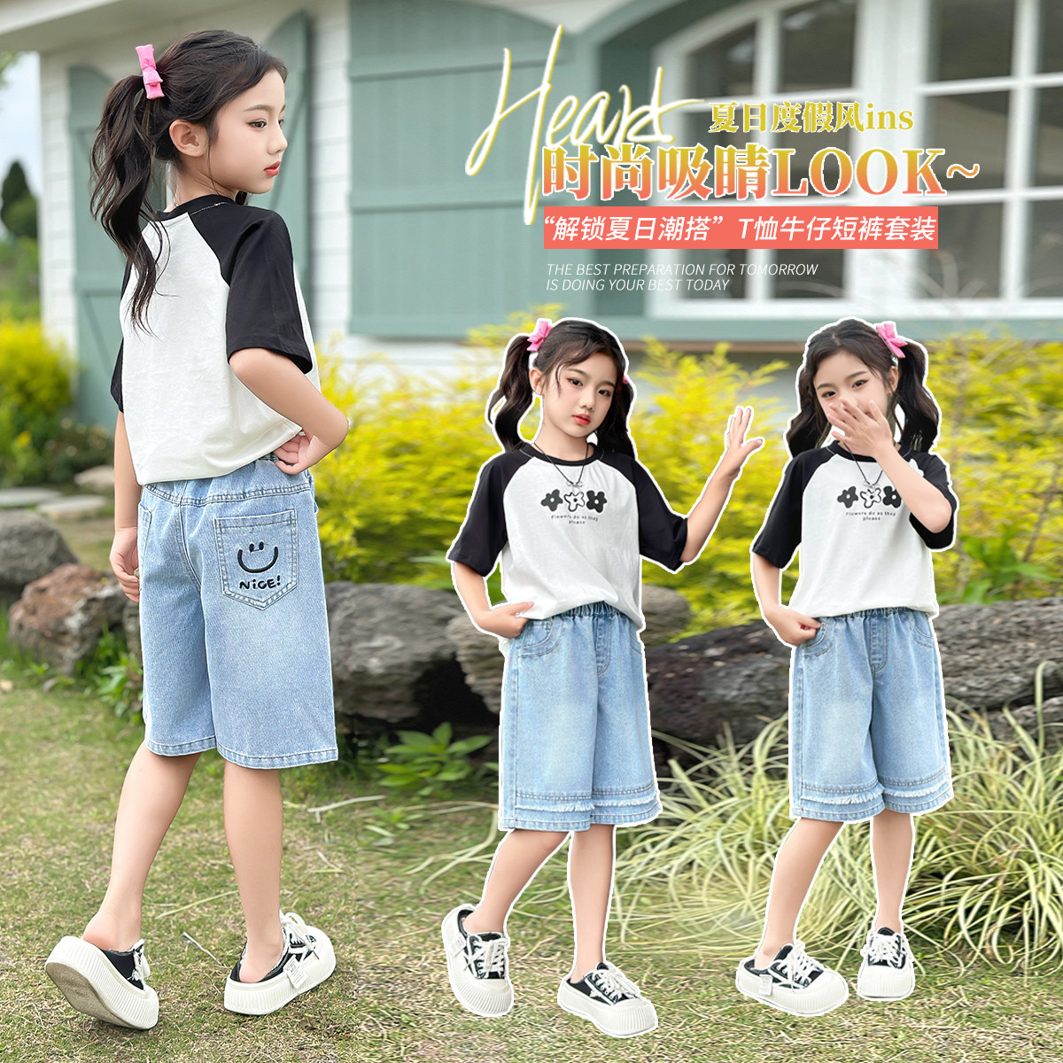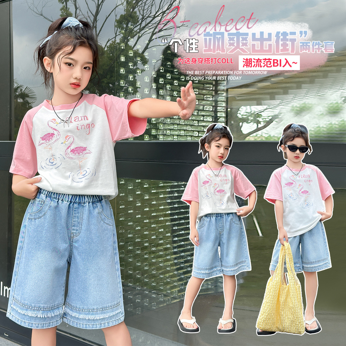 女童夏季套装2024新款儿童短袖韩版时尚两件套中大童女孩夏装 451663