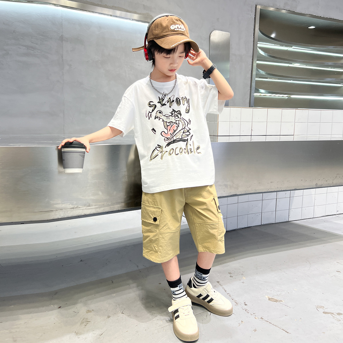 男童夏季套装2025夏装两件套儿童男孩洋气百搭上衣裤子两件套 488399