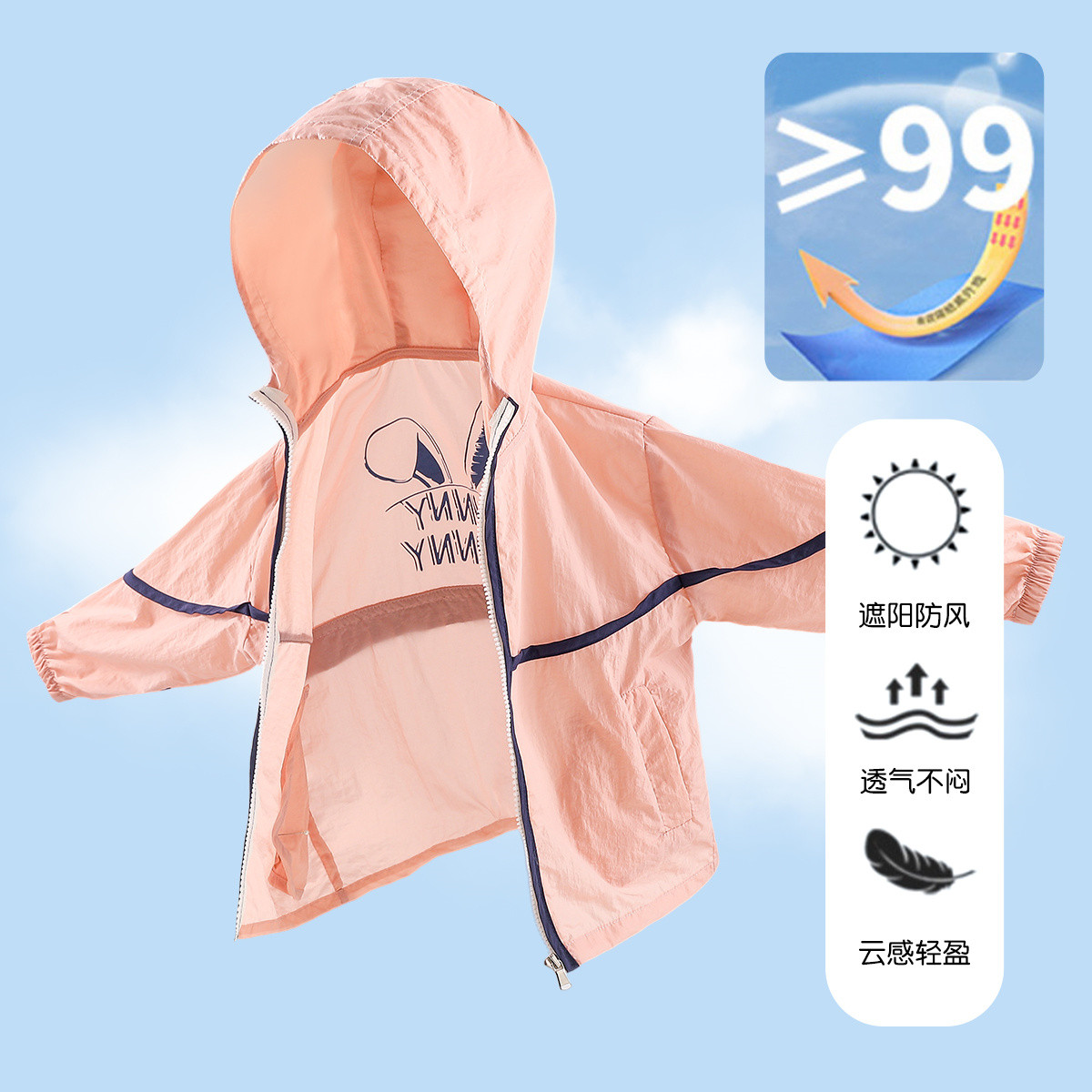 男女童外套空调服25夏季户外防遮阳晒斗篷薄款大童青少年拉链衫 151951