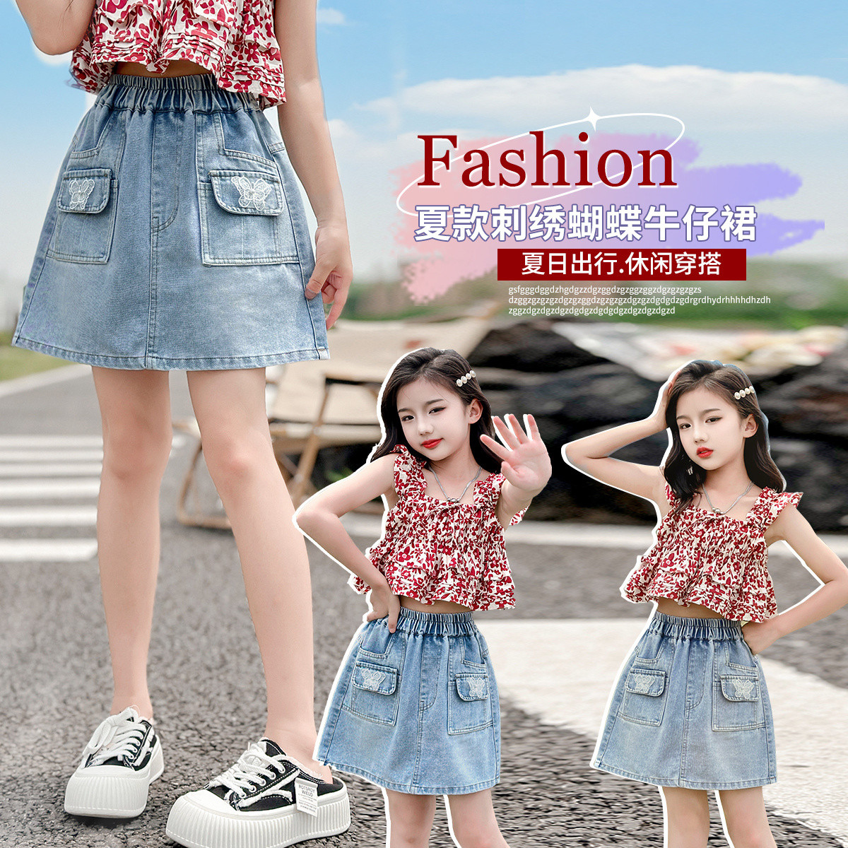 女童牛仔半身裙夏款2024中大童儿童水洗洋气宽松外穿裙子 891343