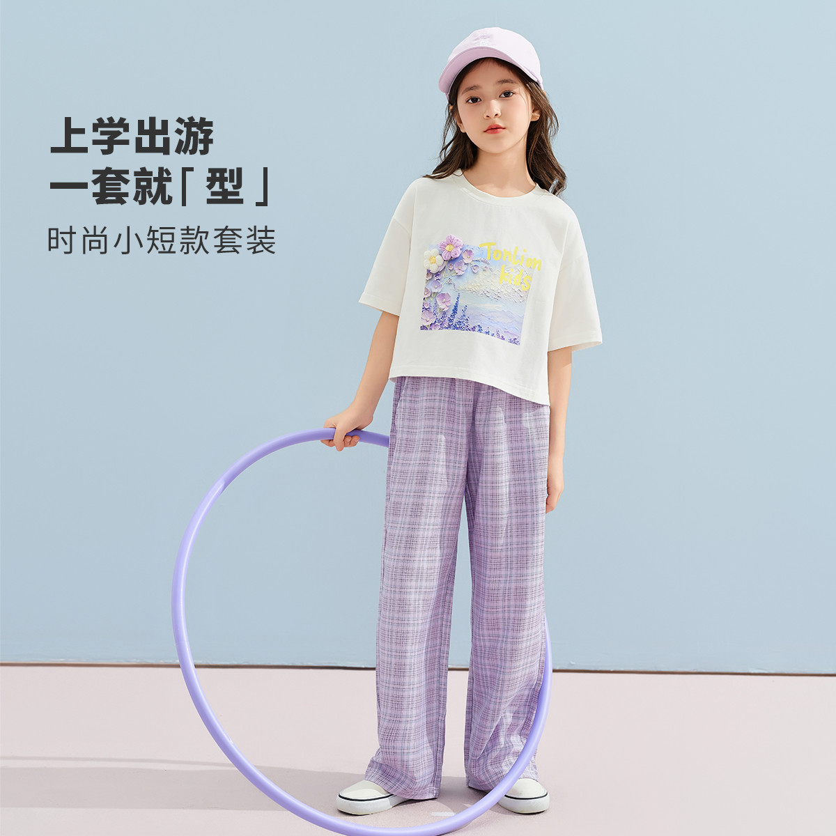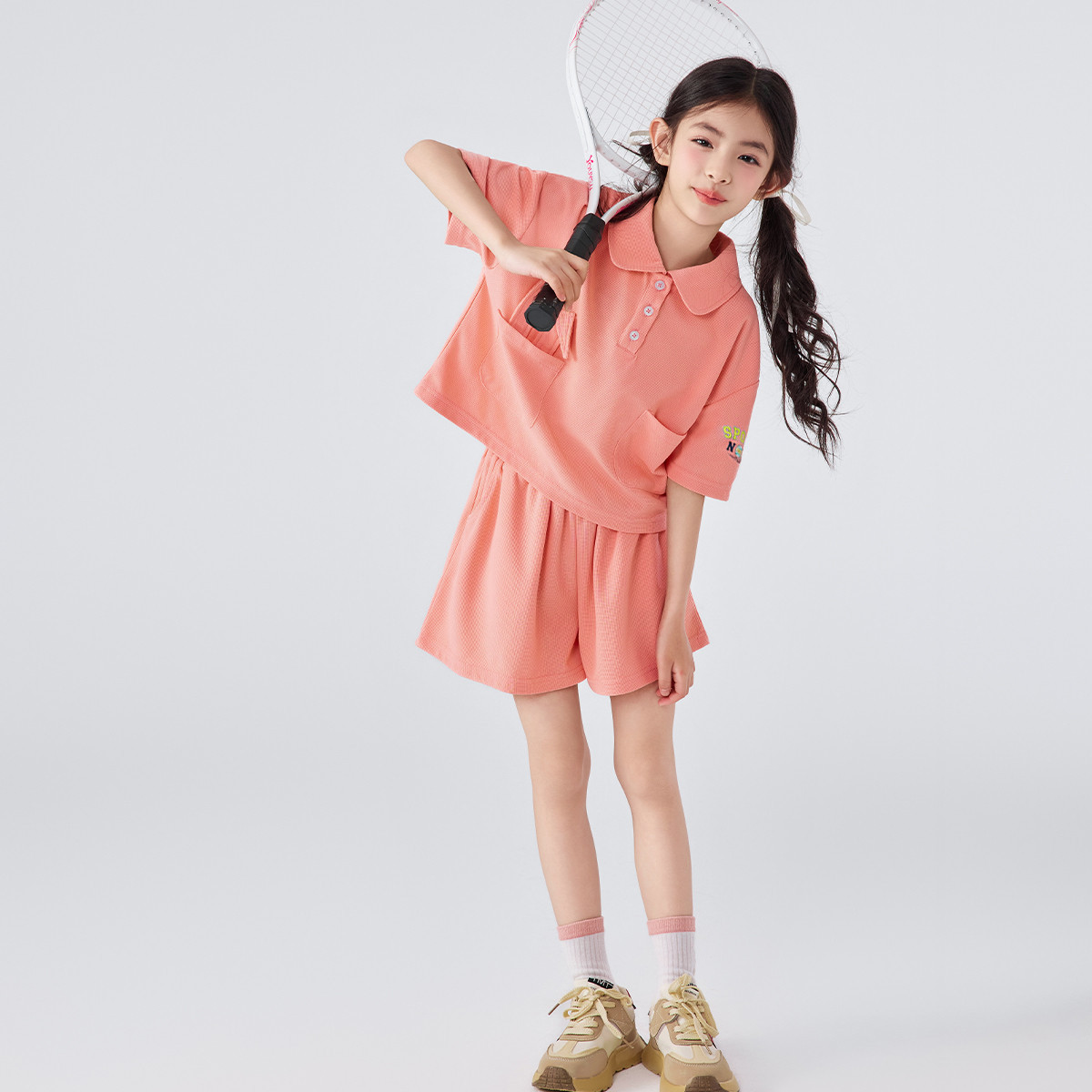 【100%棉套装】2025款夏装中大童简约短袖两件套女童套装 307166