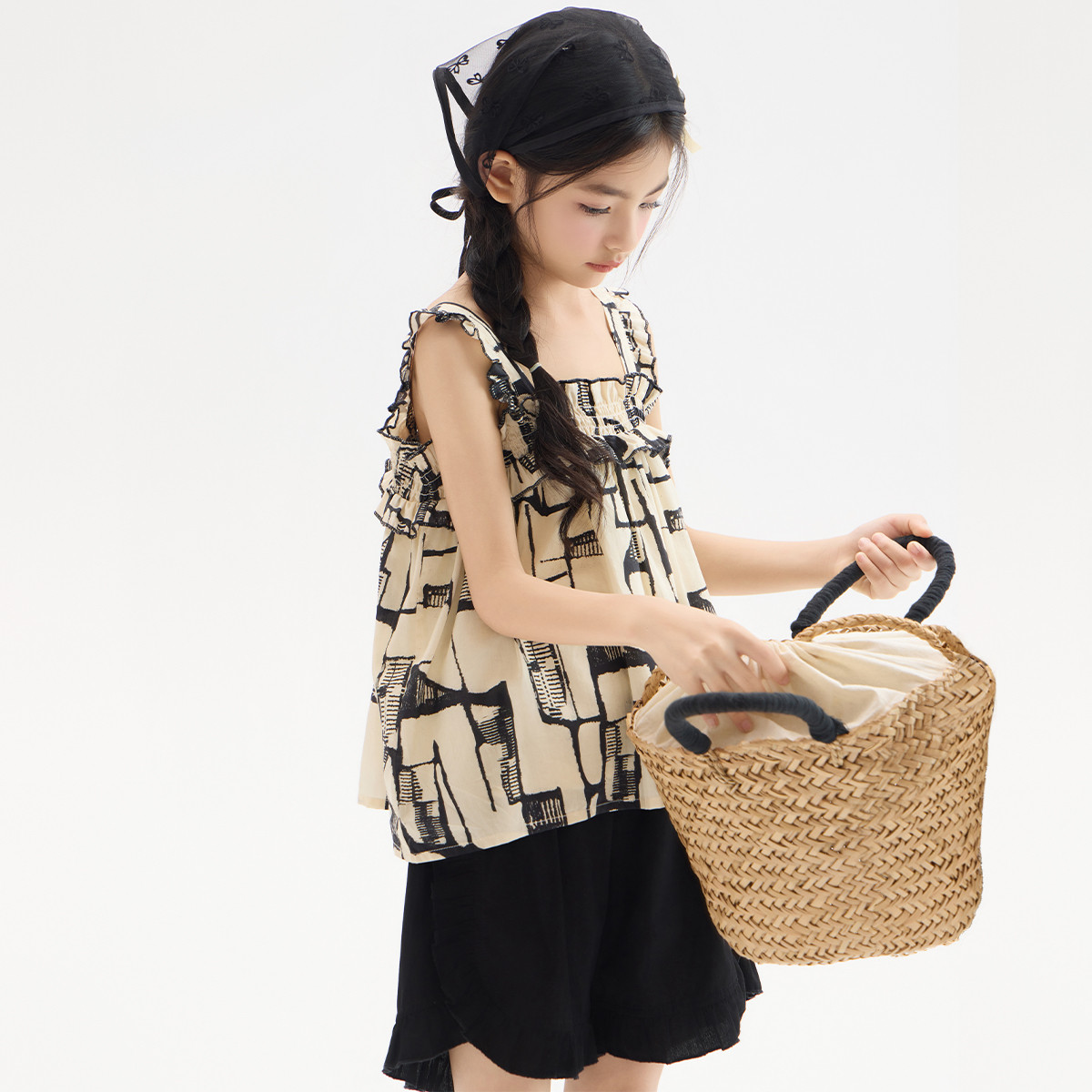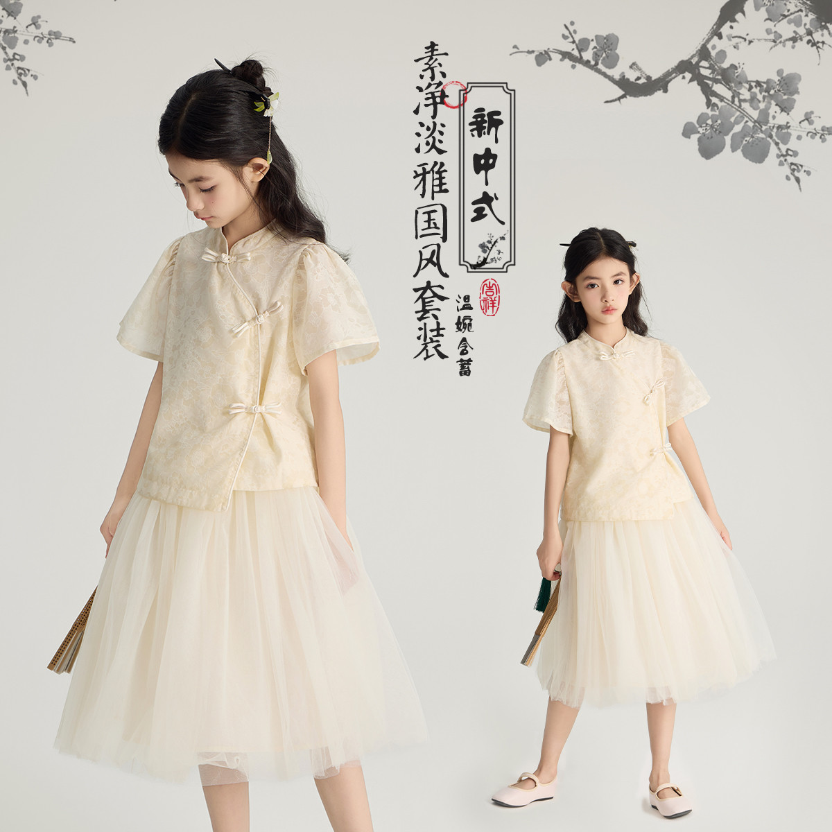 女童套装2024夏季甜美可爱新中式国风女童百搭网纱气质套装 484431