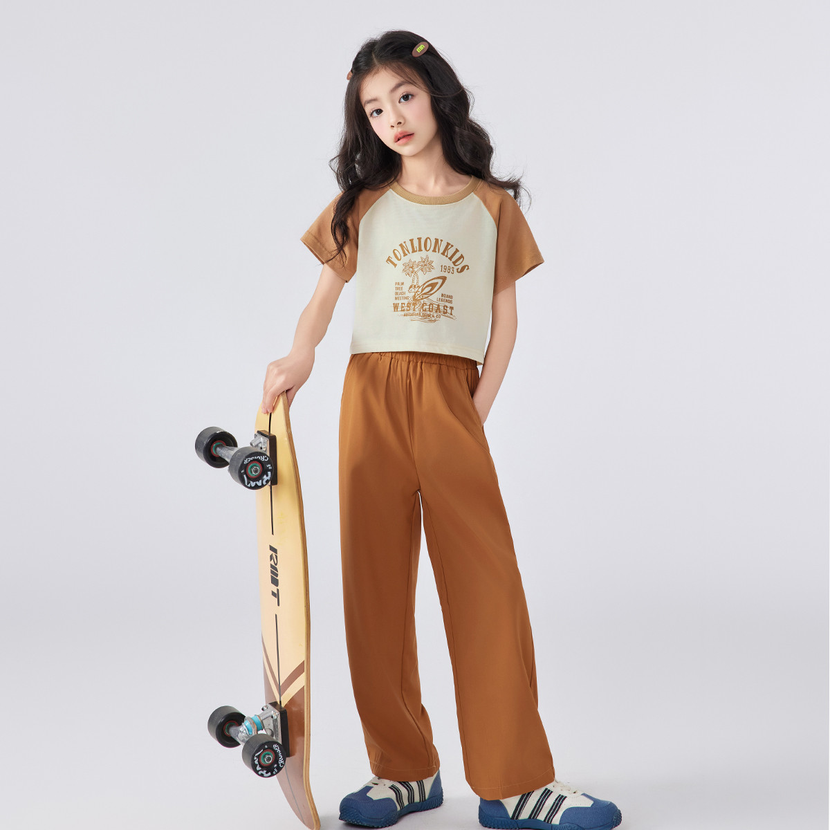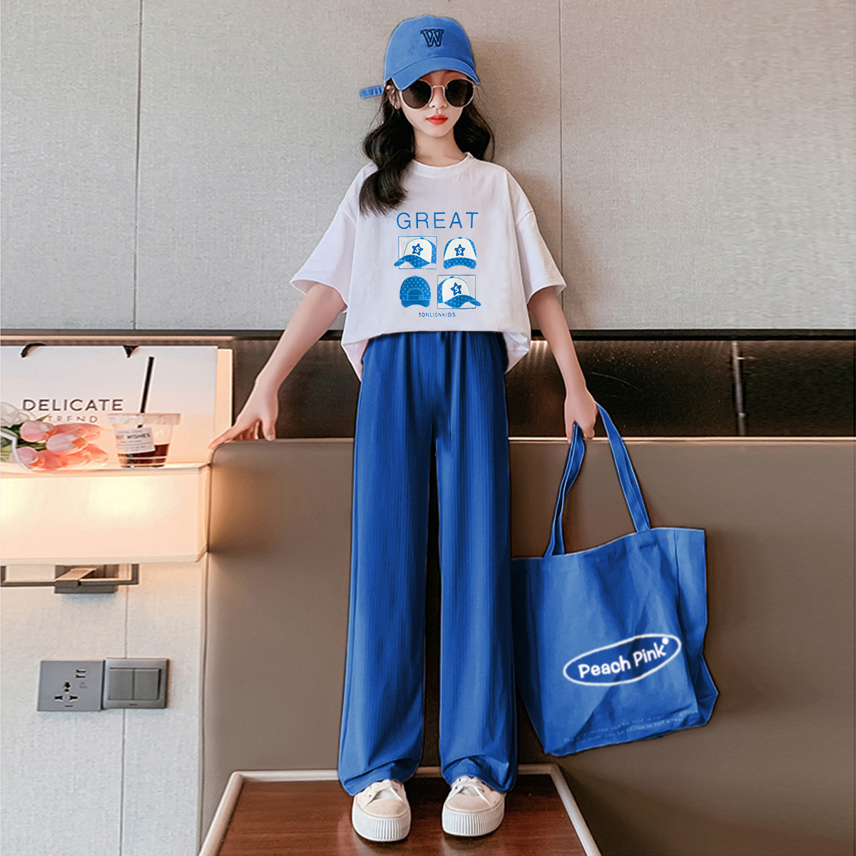 女童套装2024夏季儿童套装中大童T恤上衣阔腿长裤两件套 951951