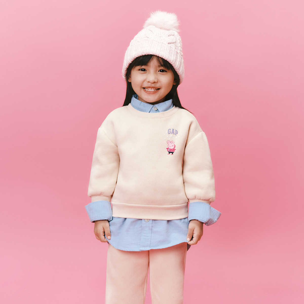 【小猪佩奇联名】Gap女幼童春秋印花抓绒保暖运动卫衣847235 586778