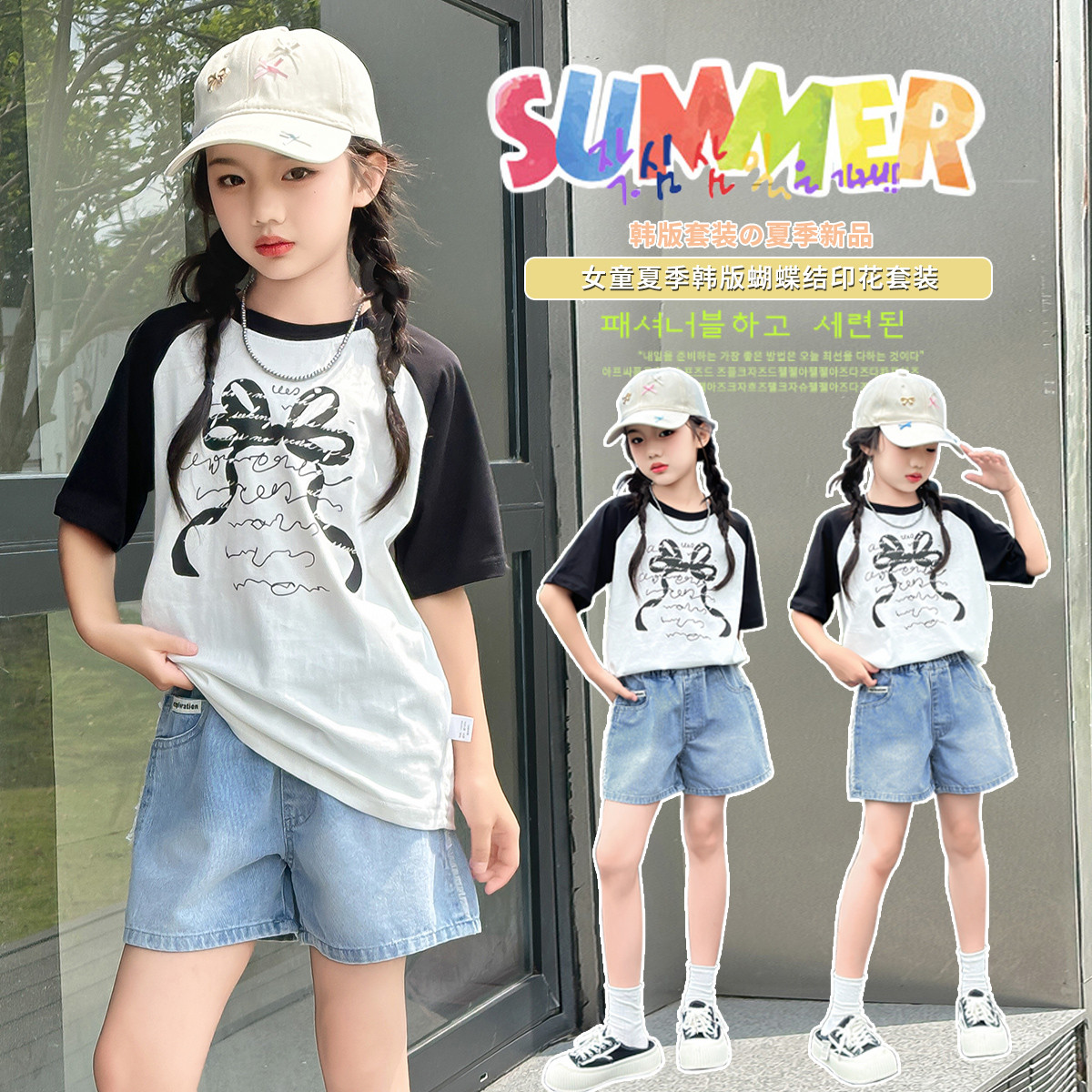 女童套装2024夏季儿童套装中大童短袖短裤套装休闲两件套 853647