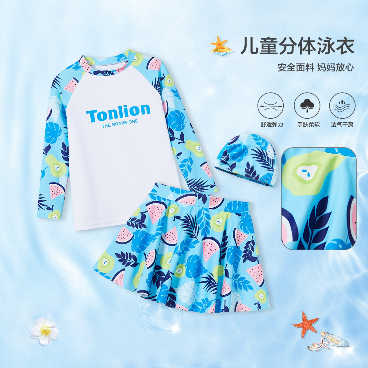 【含泳帽】泳衣女童2024分体式儿童游泳衣中大童泳装四季穿 219663