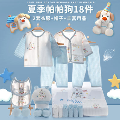 班杰威尔 新生儿礼盒婴儿衣服套装 18件套 66cm 夏季帕帕狗 蓝色A