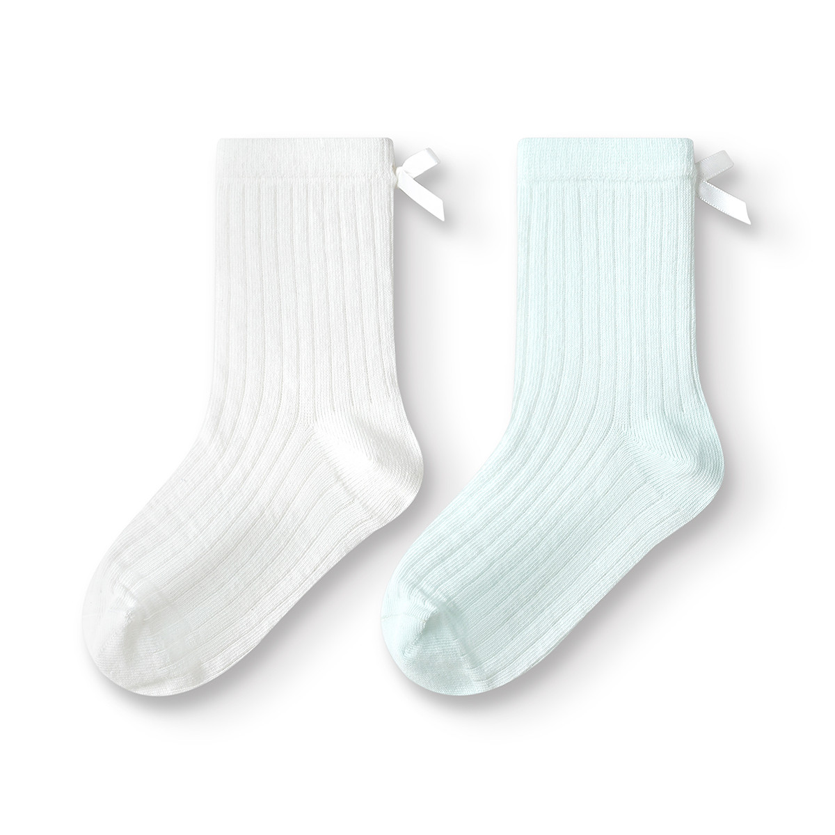 商场同款女童袜子儿童网眼袜夏薄款蝴蝶结袜弹力透气中筒袜两双装 846341
