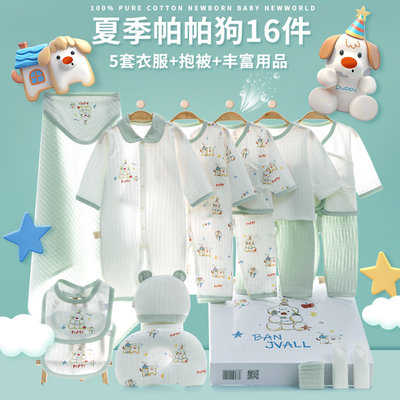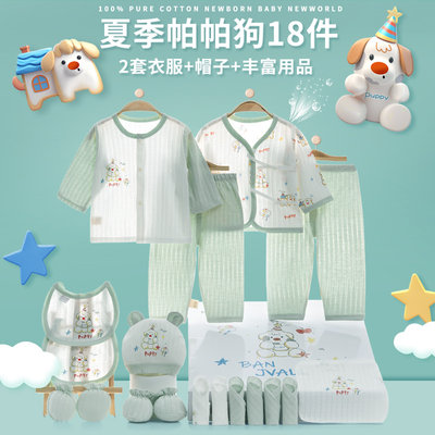 班杰威尔 新生儿礼盒婴儿衣服套装 18件套 66cm 夏季帕帕狗 绿色C