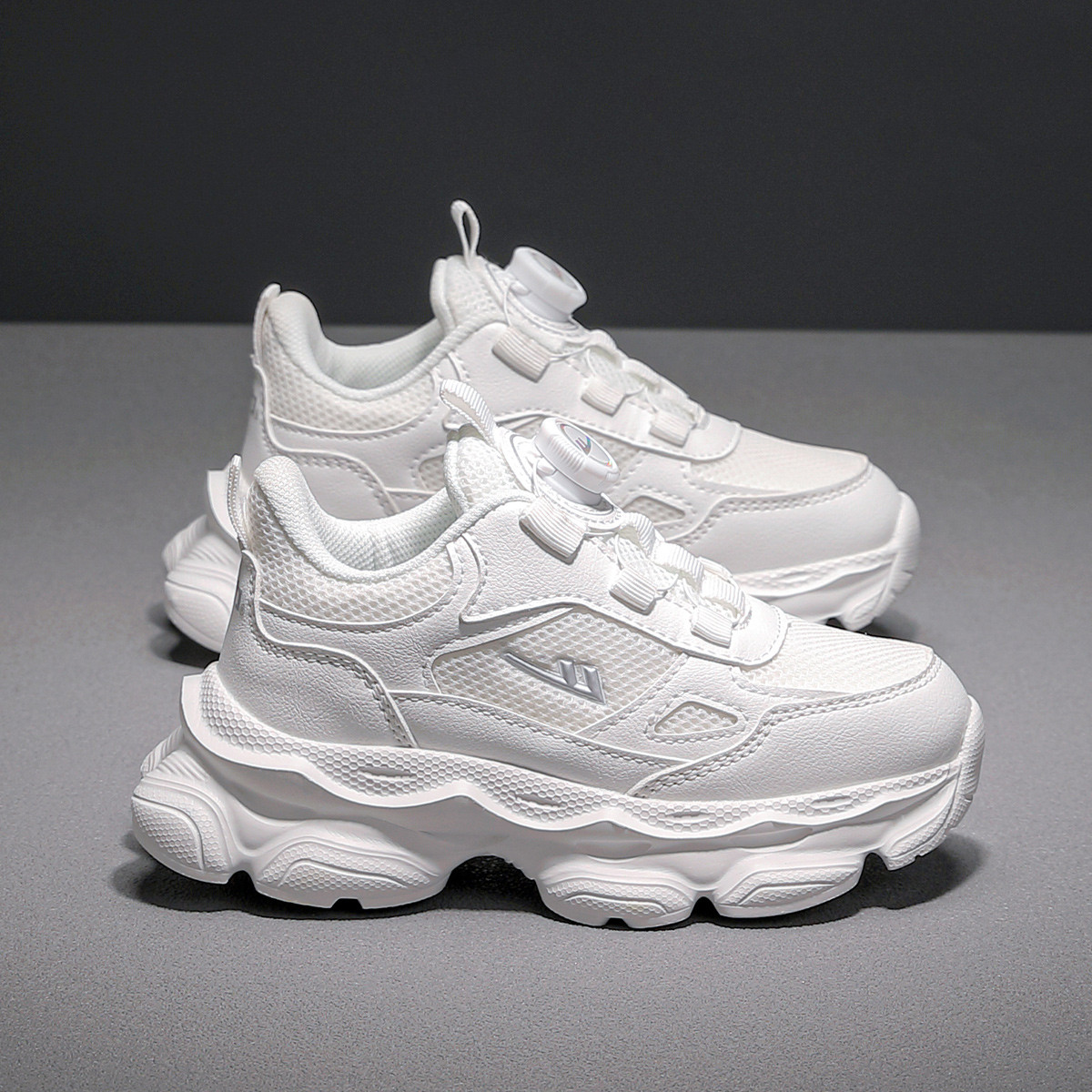 儿童运动鞋厚底小白鞋旋钮扣日常款男女童中大童运动鞋 583304
