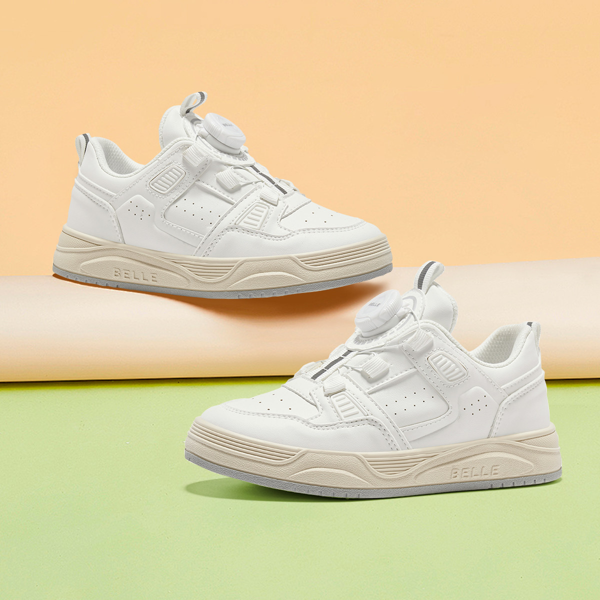 【春季热卖】旋钮纽扣儿童时尚小白鞋轻便舒适休闲童鞋低帮板鞋 687837