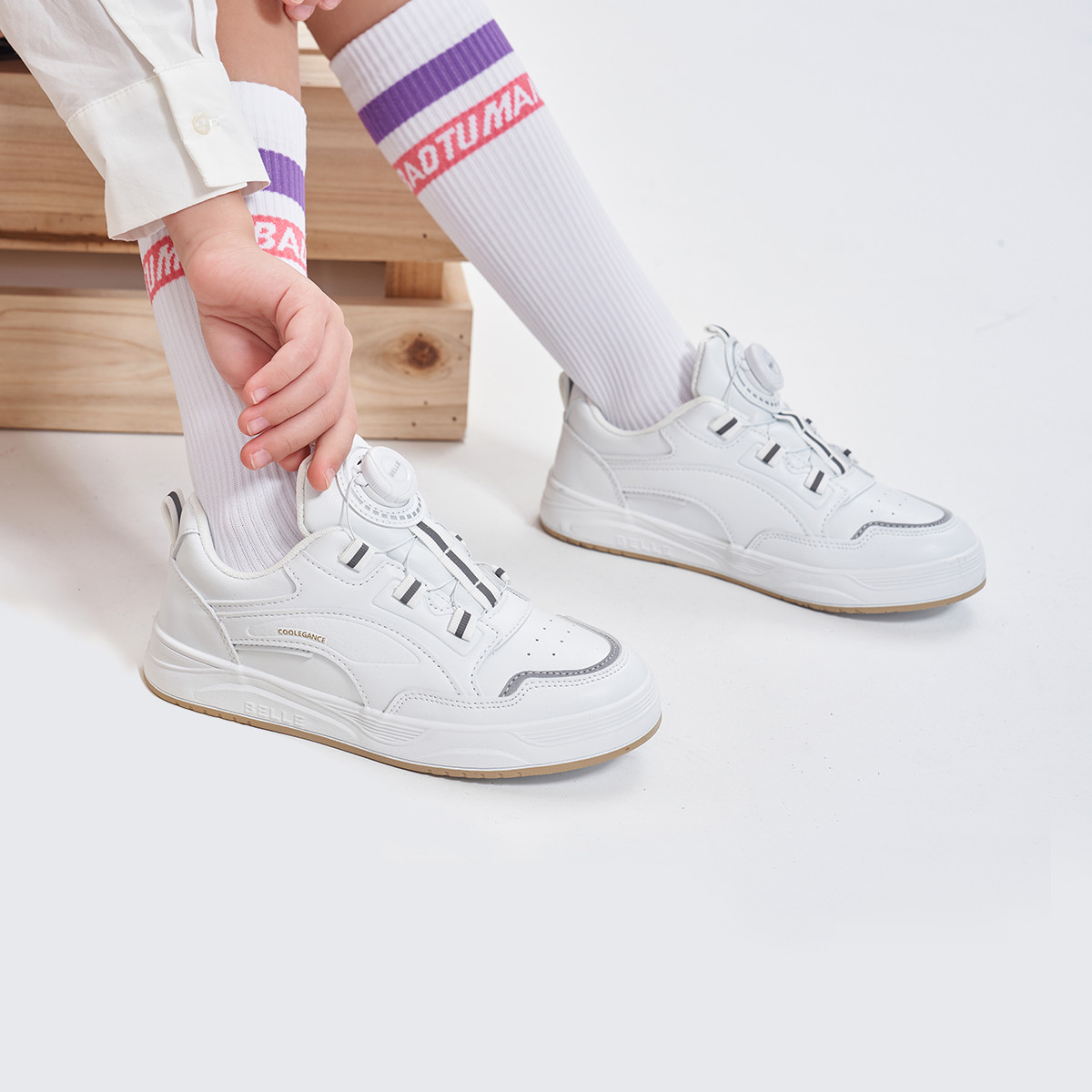 【春季热卖】旋钮纽扣儿童时尚小白鞋轻便舒适休闲童鞋低帮板鞋 687837