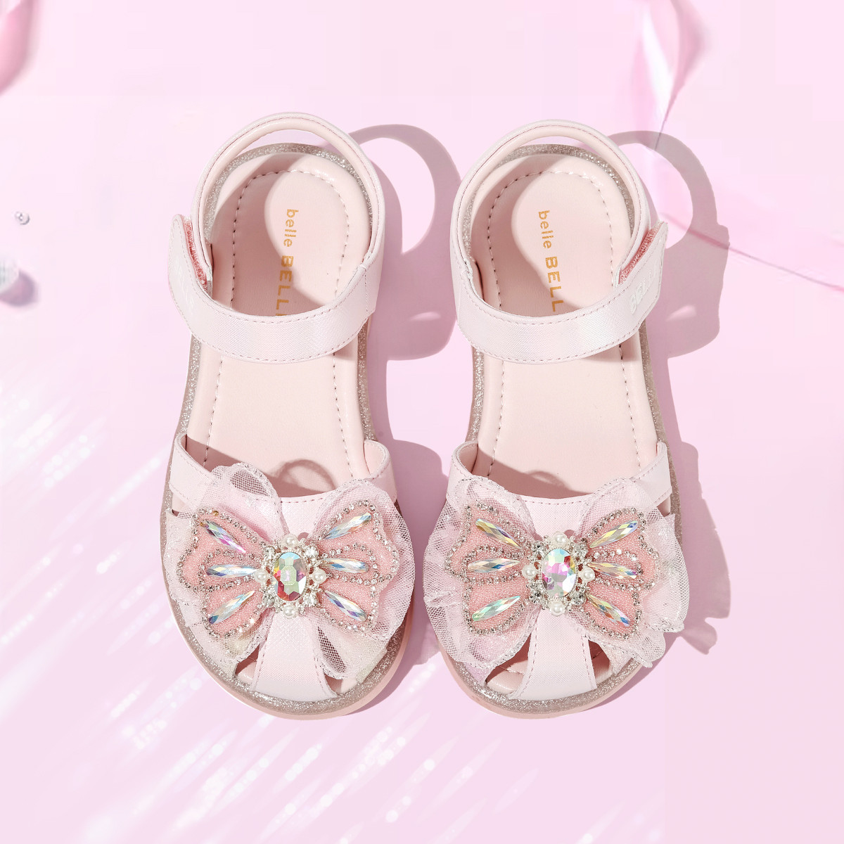 【闪钻轻纱公主凉鞋】夏季女童凉鞋百搭透气包头校园蝴蝶结凉鞋 359819