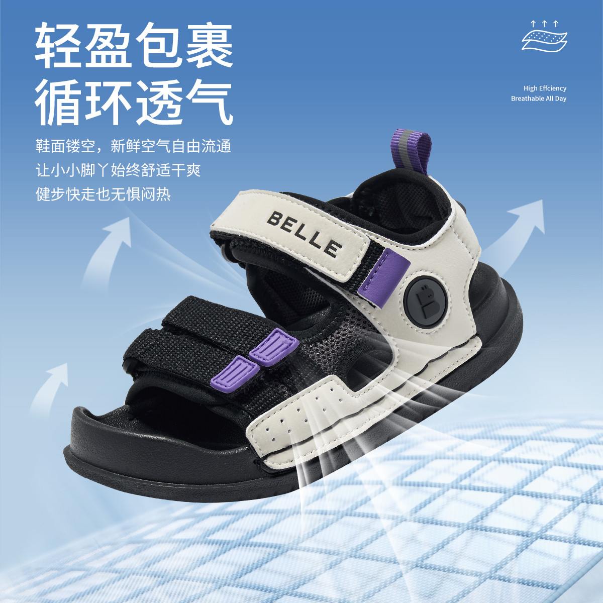 【轻户外运动凉鞋】夏季男女童沙滩鞋车轮底露营透气儿童网面凉鞋 117195