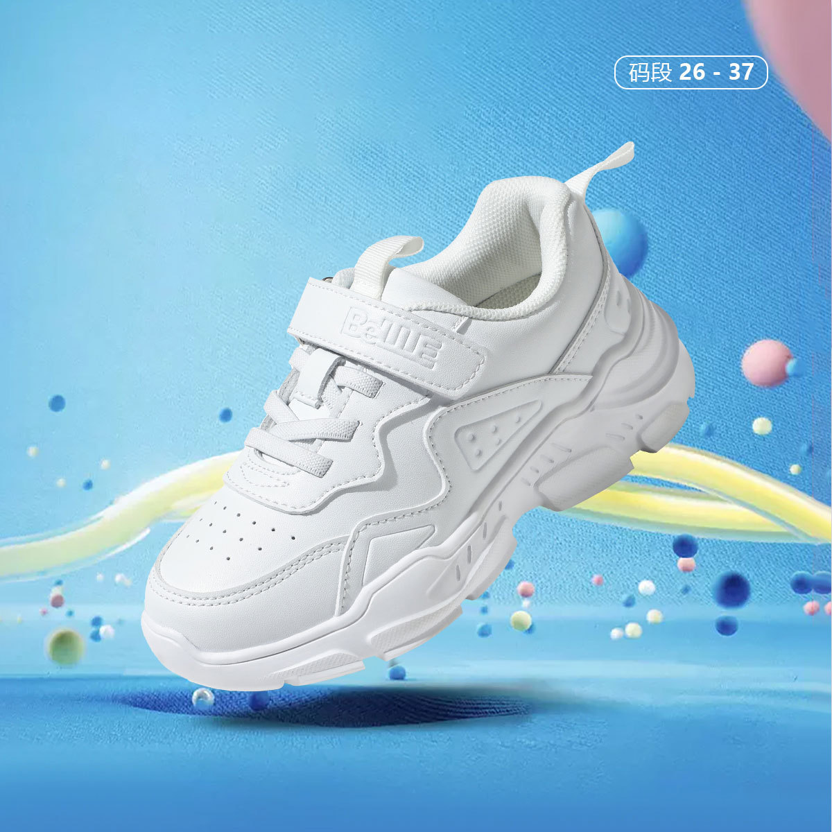 童鞋儿童运动鞋中大童魔术贴简约户外休闲小白鞋轻便透气包裹童鞋 208968