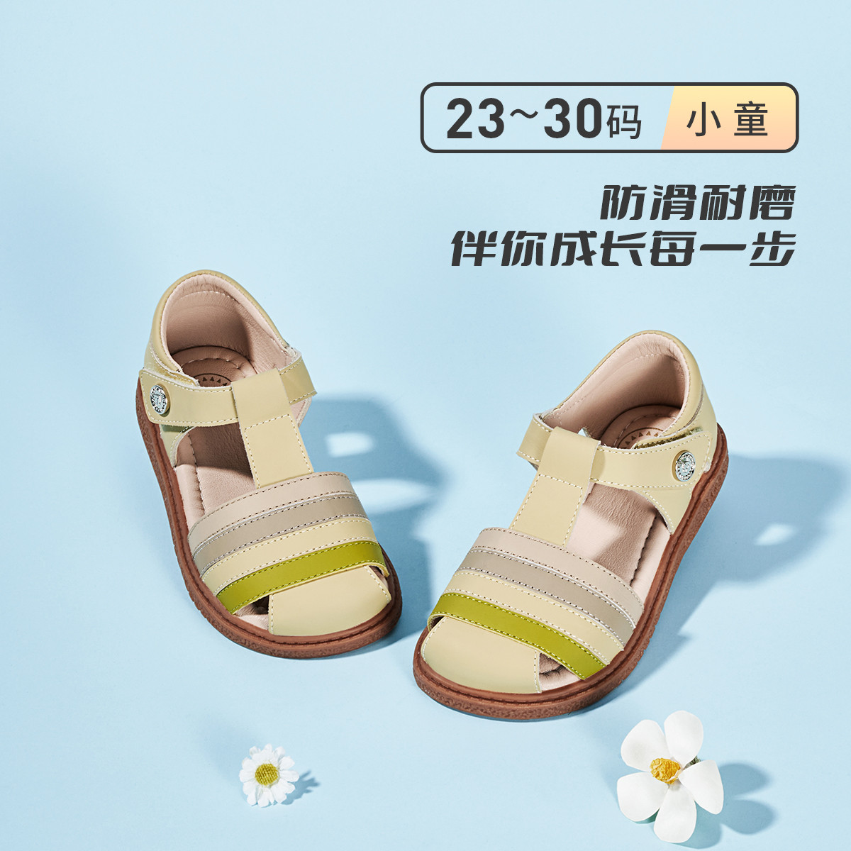泰兰尼斯夏款女童包头运动凉鞋儿童真皮软底公主鞋透气轻便宝宝鞋 877335
