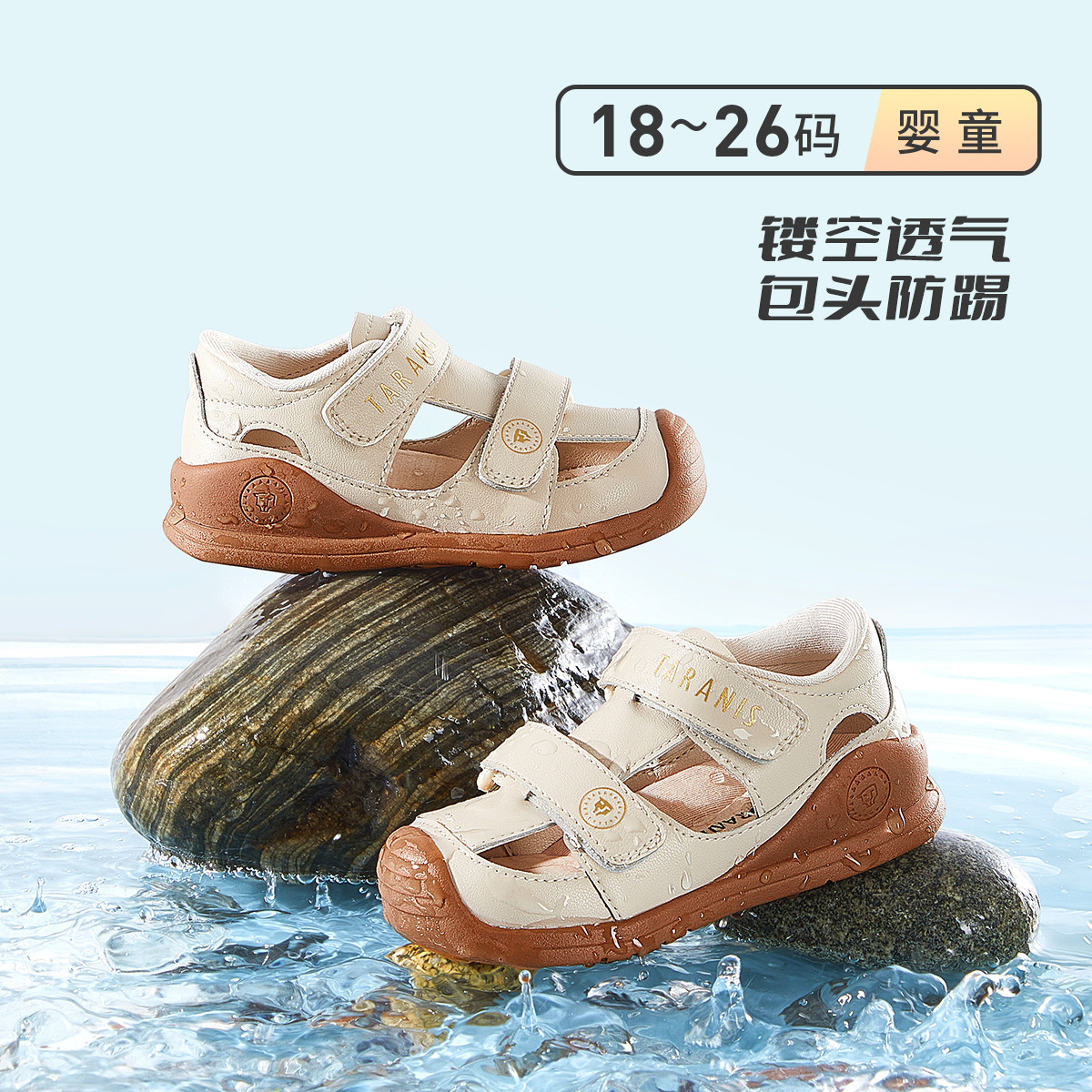 泰兰尼斯儿童包头运动凉鞋软底小童户外男女童时尚包头防踢鞋 496087