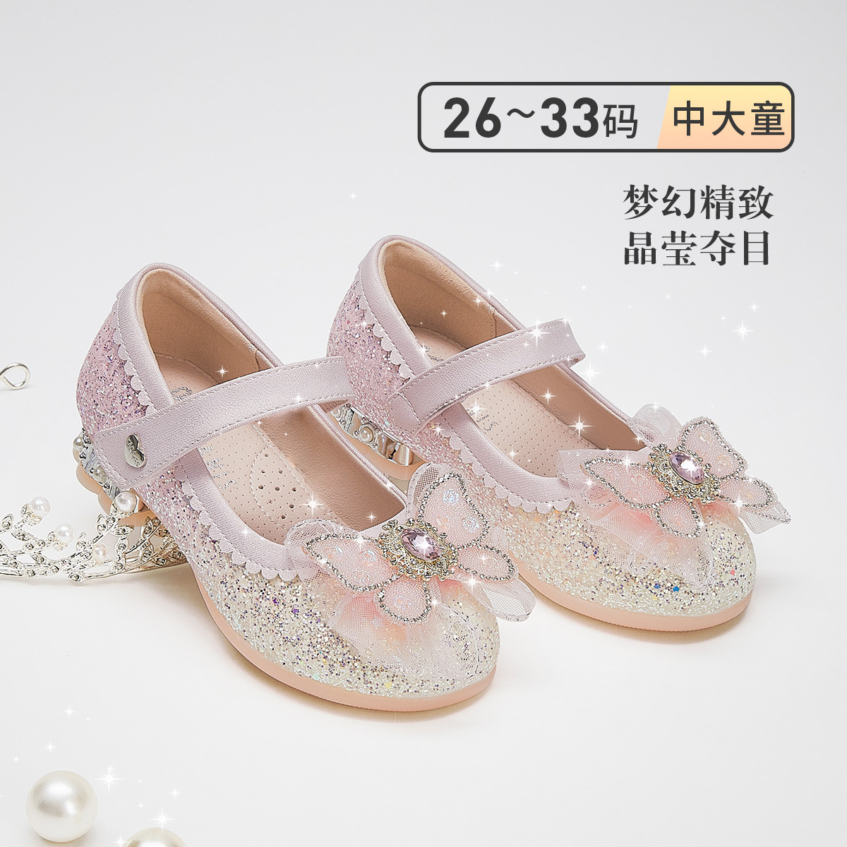 春夏季女童皮鞋春夏软底水晶鞋儿童演出时装鞋甜美时尚闪亮公主鞋 021975