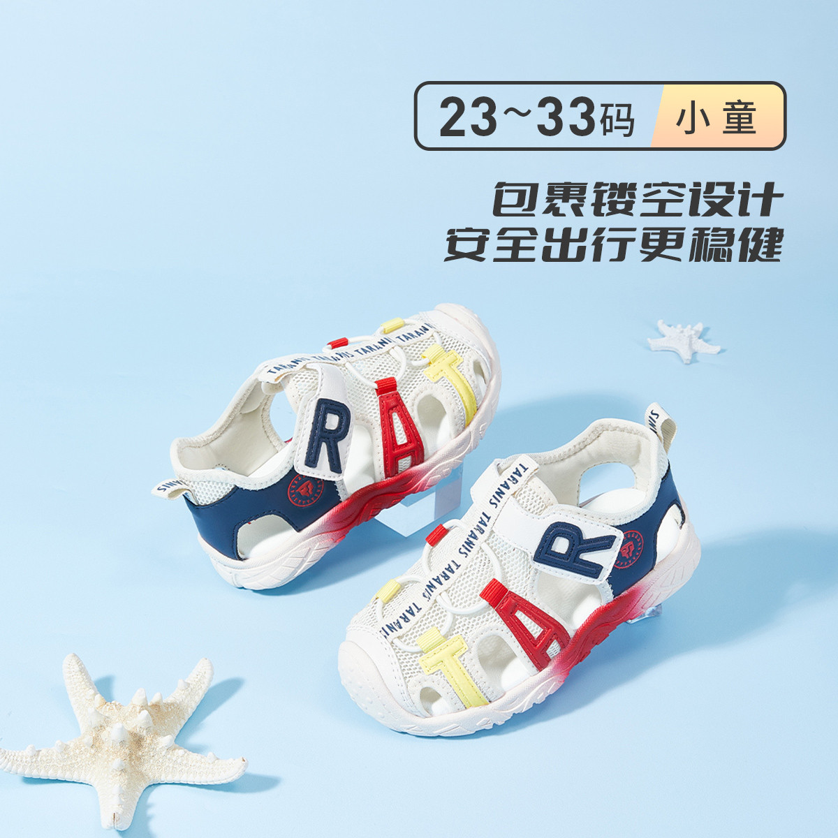 夏季包头男童个性撞色字母女童休闲风鞋子透气儿童运动凉鞋 911383