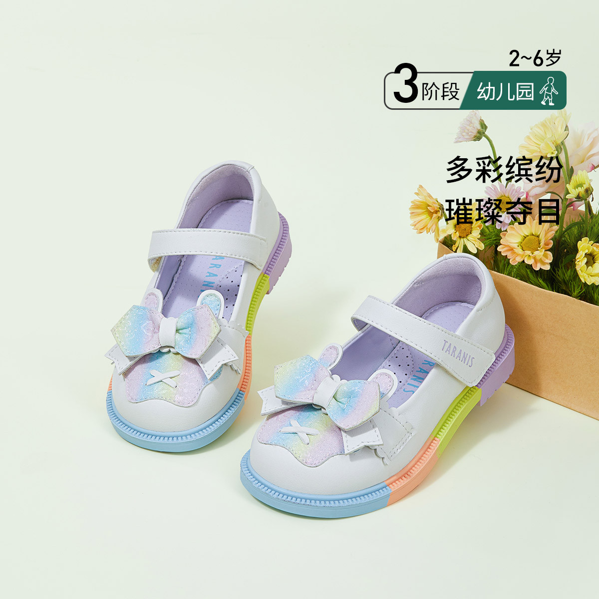 泰兰尼斯夏季款女童小皮鞋小童演出表演鞋时尚彩虹软底低跟公主鞋 428695