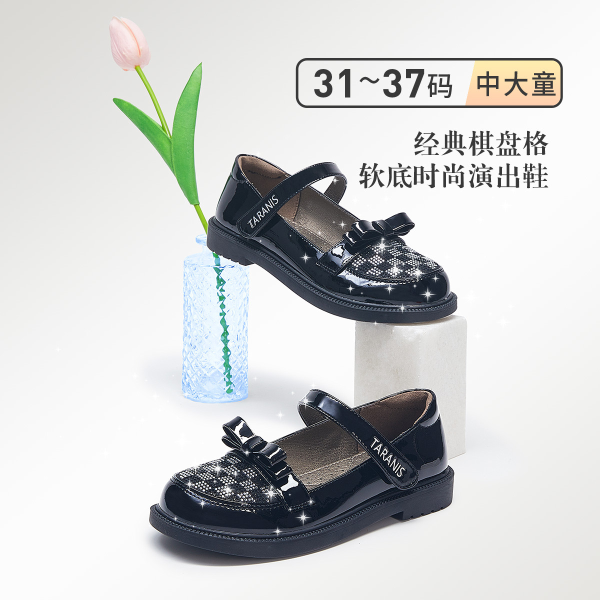 秋季款儿童皮鞋时尚棋盘格软底演出演出鞋中大童单鞋女童公主鞋 424599