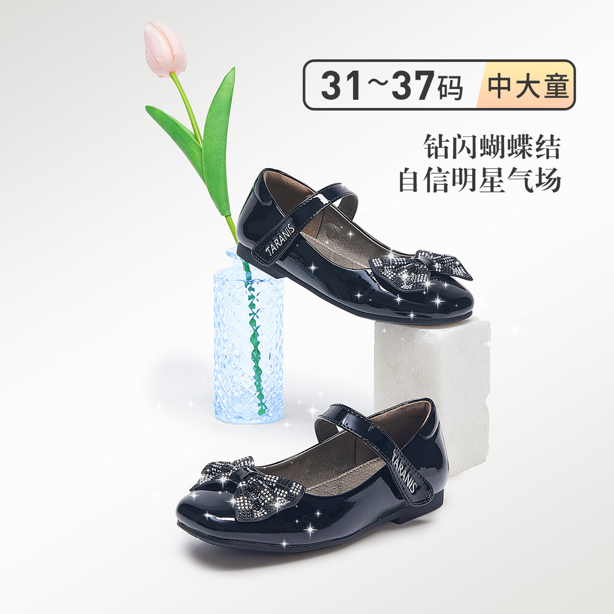 春夏季款儿童时尚表演小皮鞋演出鞋简约舒爽休闲女童蝴蝶结公主鞋 345111