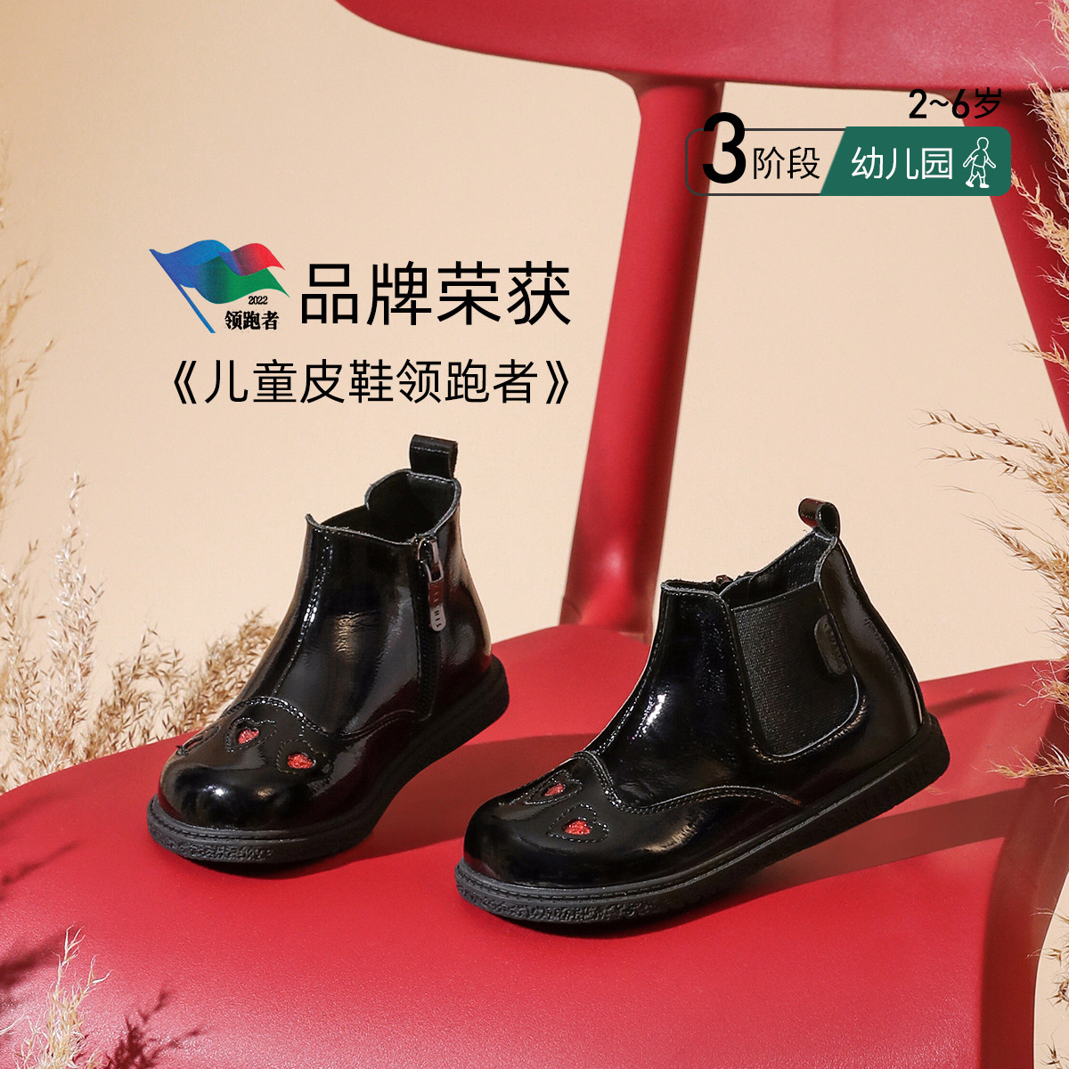 春秋款皮靴女童马丁靴子儿童小短靴宝宝软底时尚烟筒靴 054039