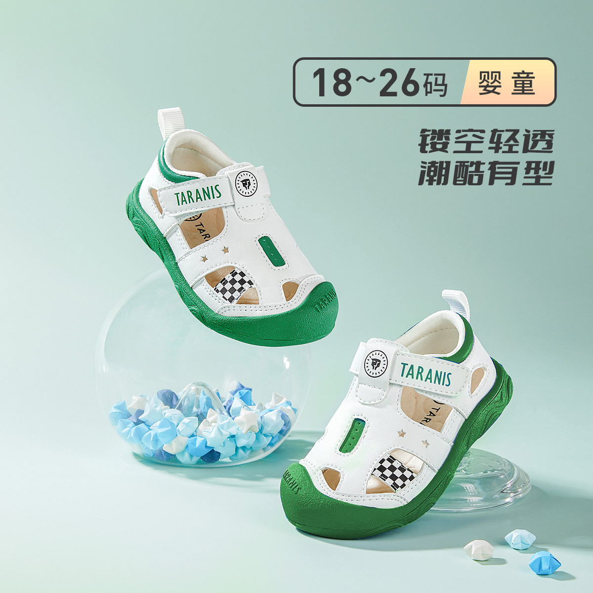 夏季包头防踢儿童运动凉鞋镂空透气学步鞋软底男宝宝机能鞋 388503