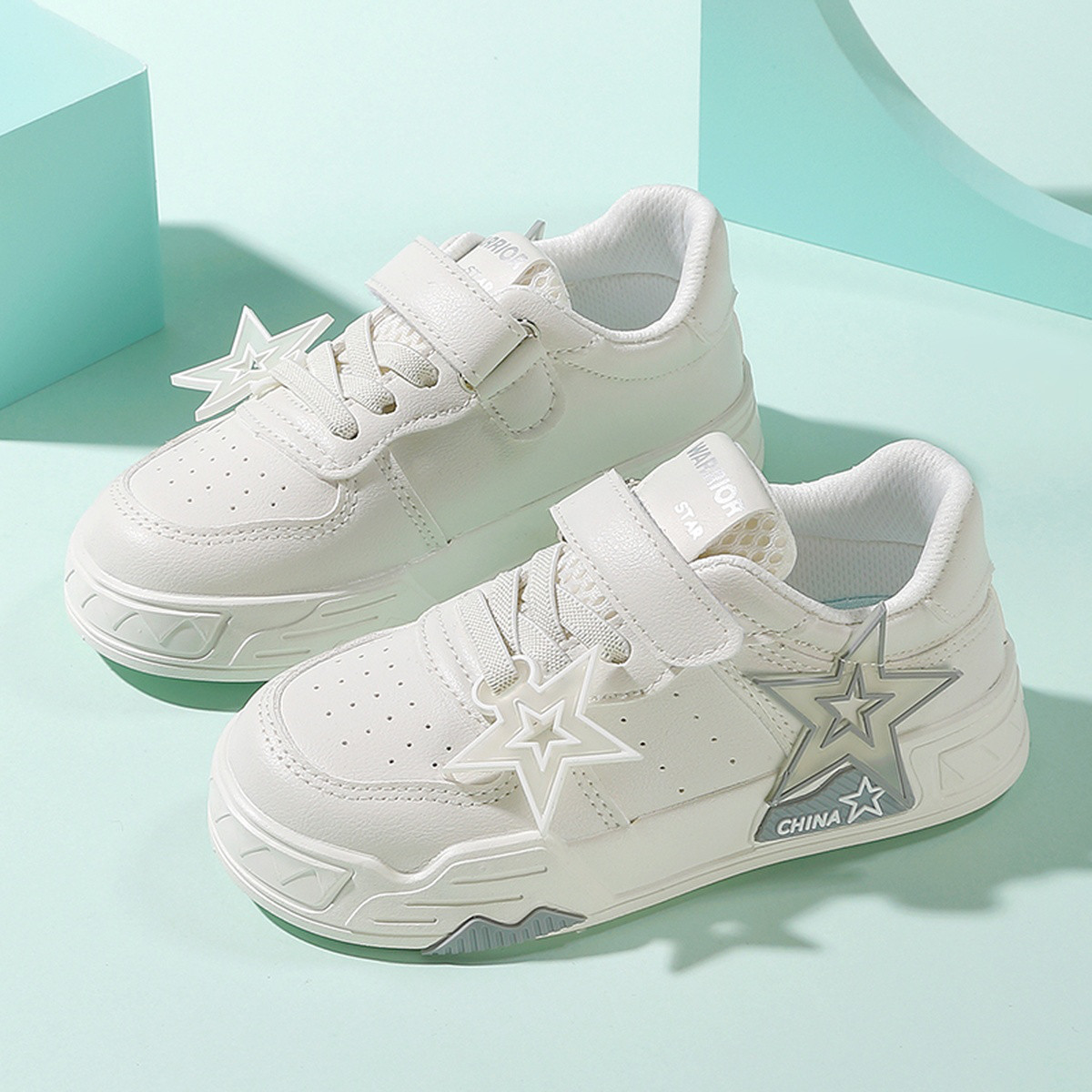 童鞋儿童运动鞋中大童魔术贴简约户外休闲小白鞋轻便透气包裹童鞋 208968