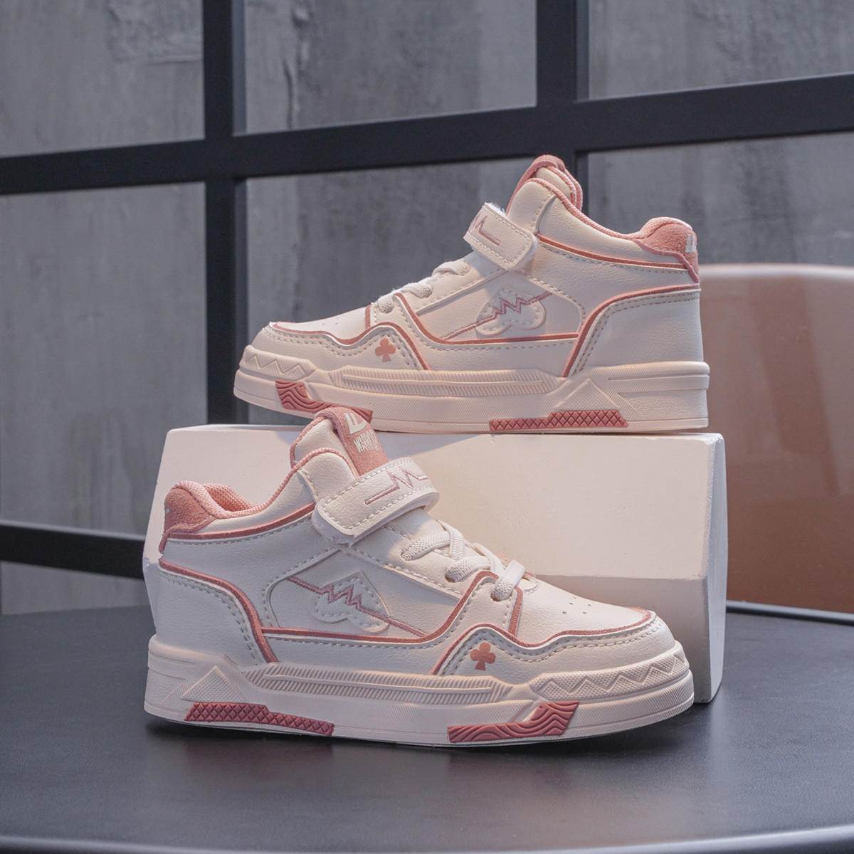 春季爆款男女童高帮防滑板鞋透气休闲鞋百搭小白鞋软底运动鞋 722435