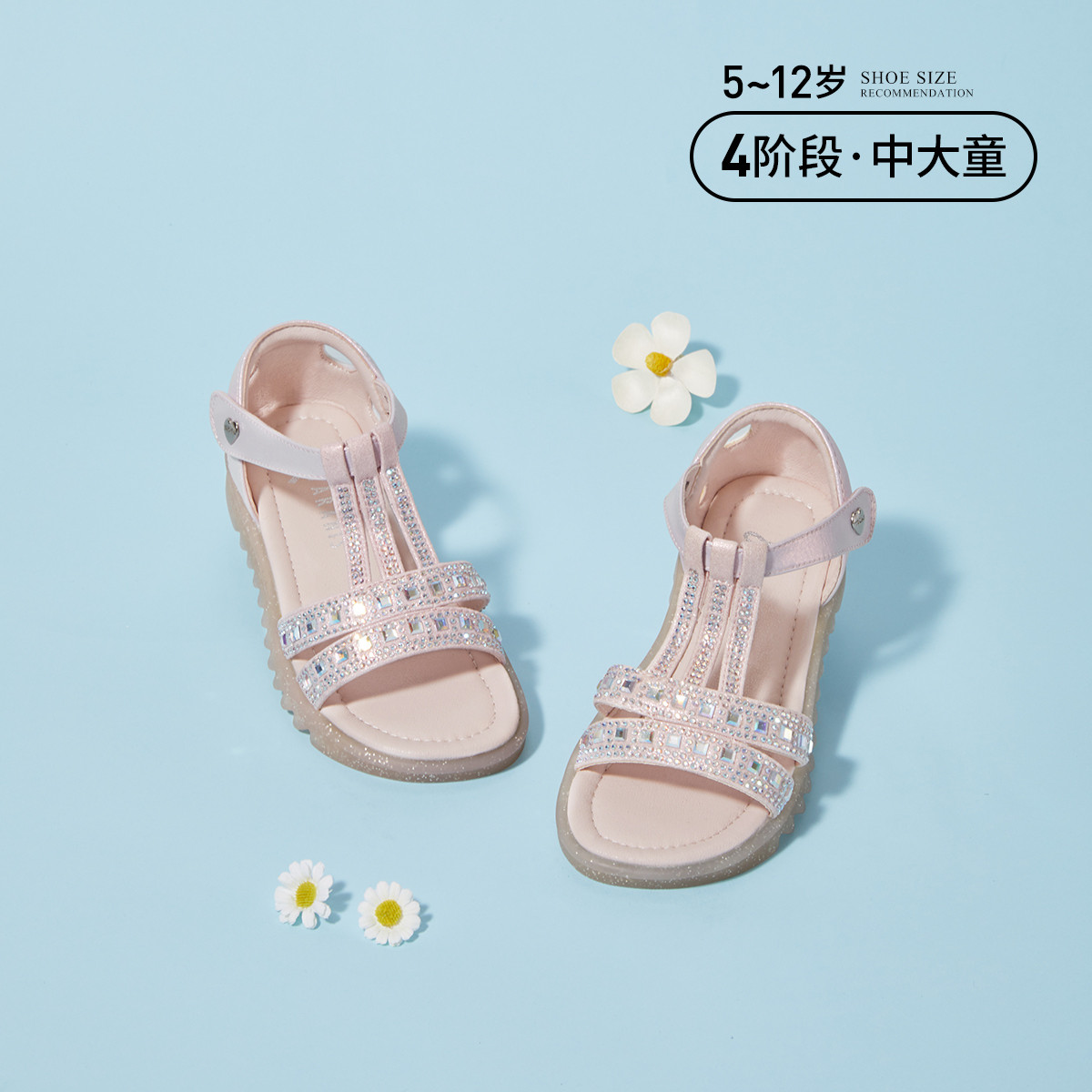 夏季款中大童透气舒适百搭凉鞋女童水晶凉鞋时尚烫钻校园公主鞋 627991
