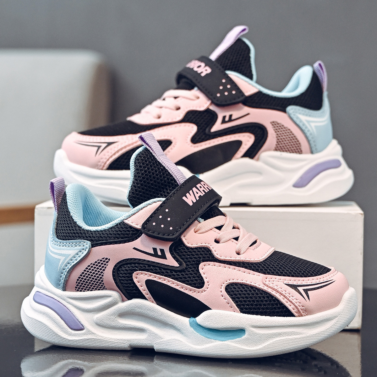 儿童网面运动鞋旋钮扣渐变风时尚休闲风男女童鞋子运动鞋 631048
