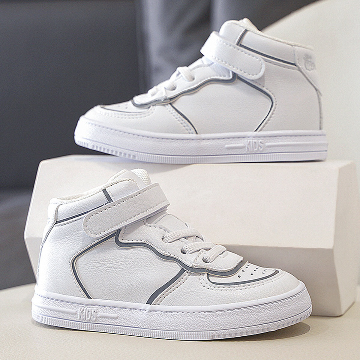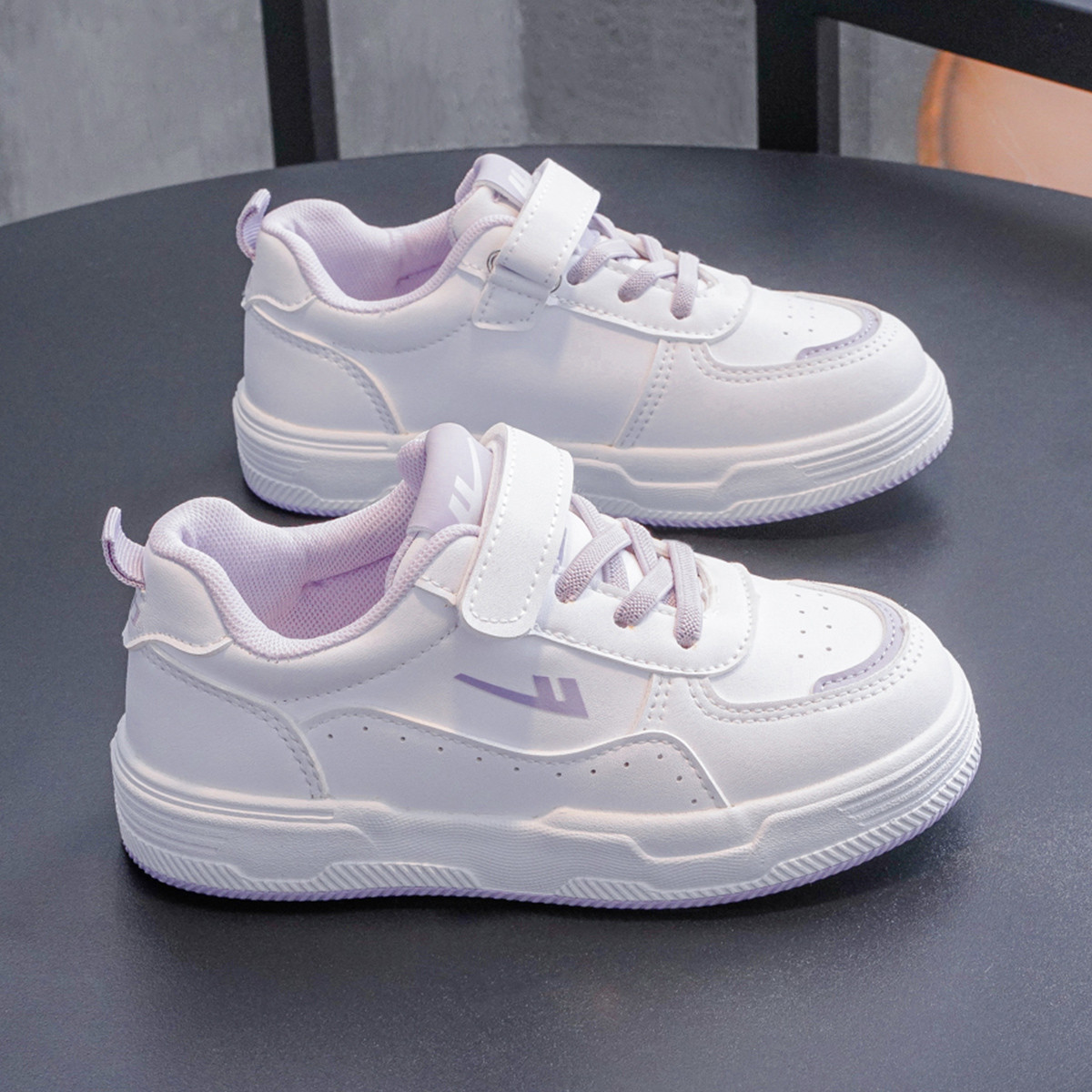 【热卖春款】时尚魔术贴儿童板鞋轻便耐磨小白鞋百搭中大童鞋 707779