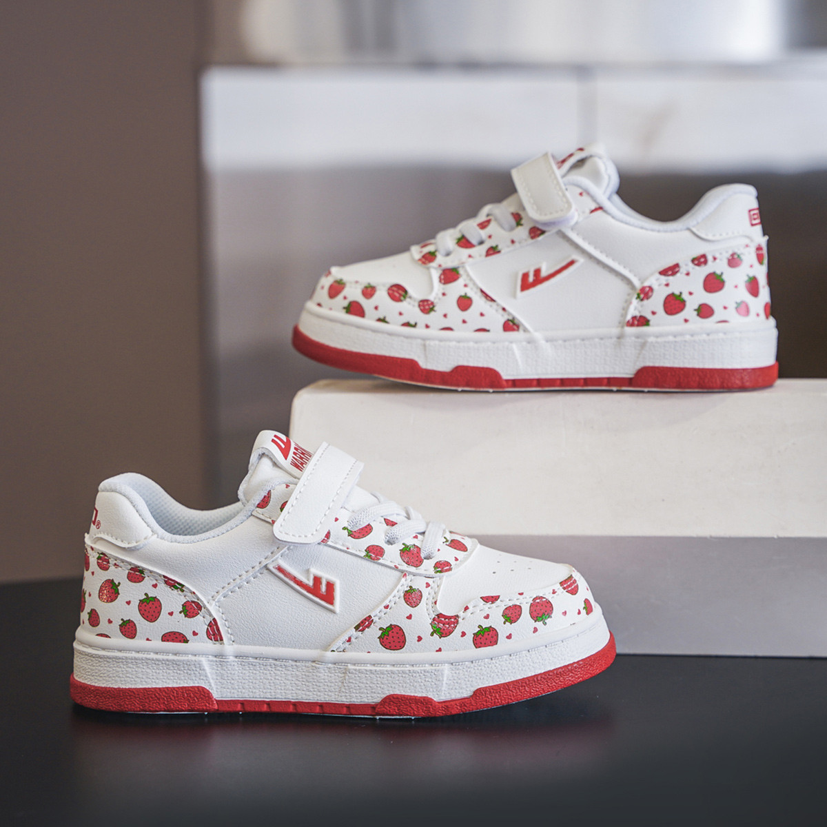 童鞋儿童可爱小草莓印花板鞋女童中大童休闲板鞋 708296