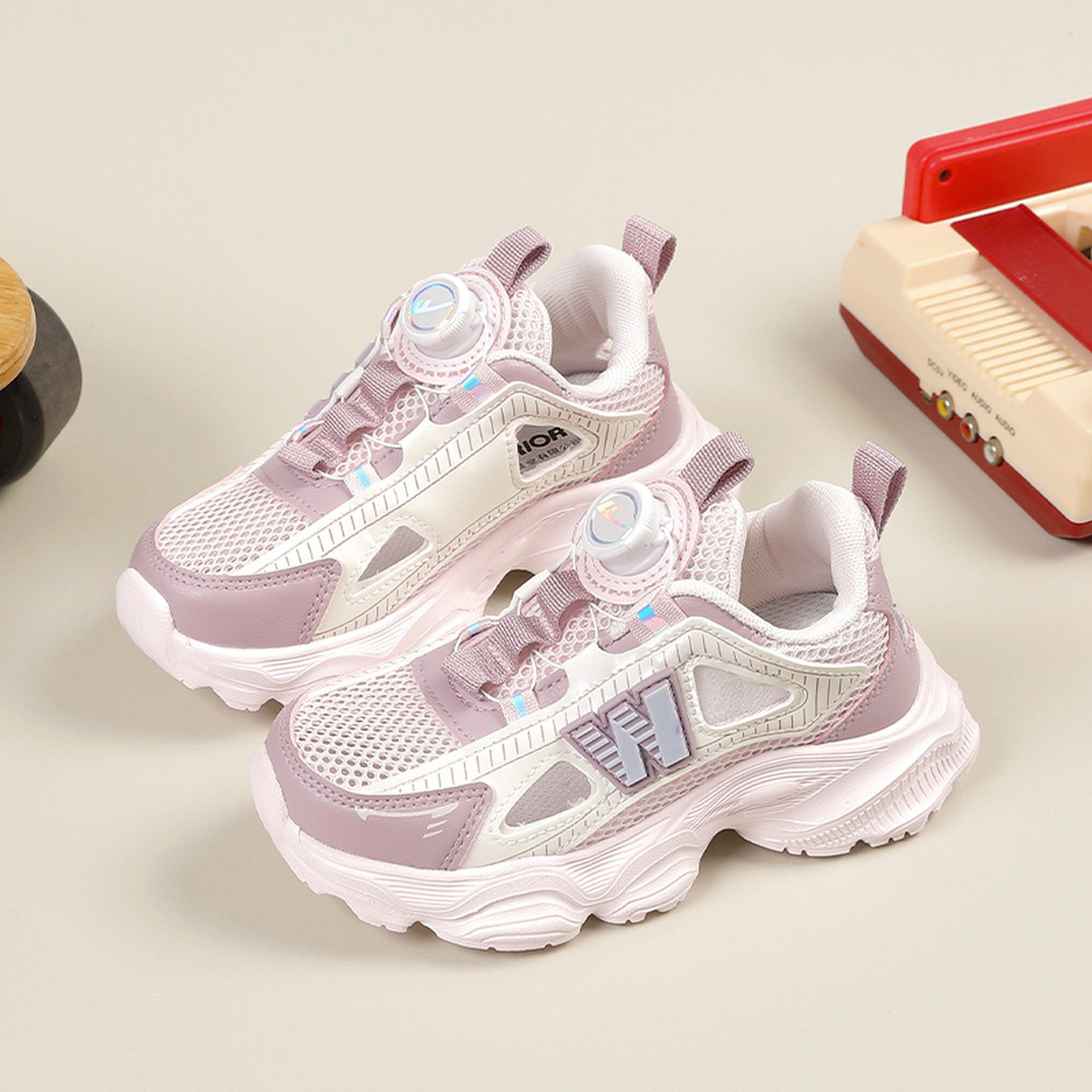 【夏季热卖】夏季网面透气儿童运动鞋旋转纽扣软底舒适跑步鞋潮流 202653