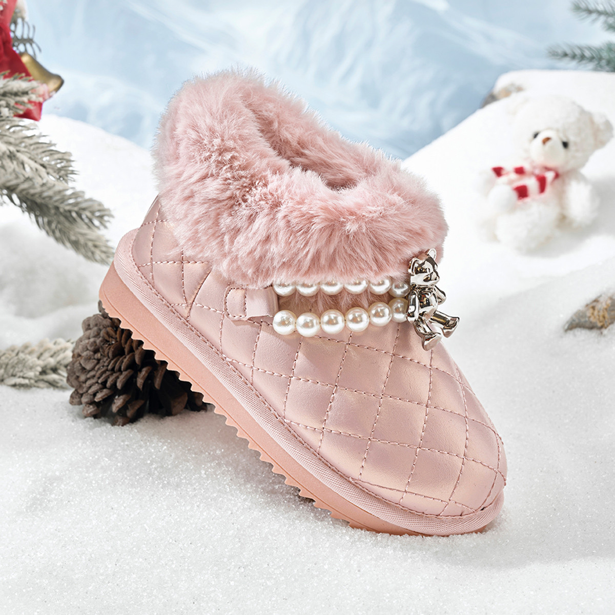 保暖防滑耐磨童鞋儿童雪地靴女童加绒加厚棉靴冬季鞋棉鞋百搭鞋子 120837