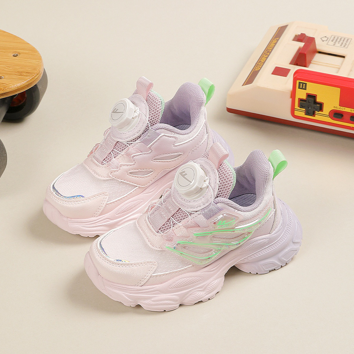 【热销爆款】春季旋转纽扣童鞋儿童运动鞋潮流时尚软底透气跑步鞋 460381