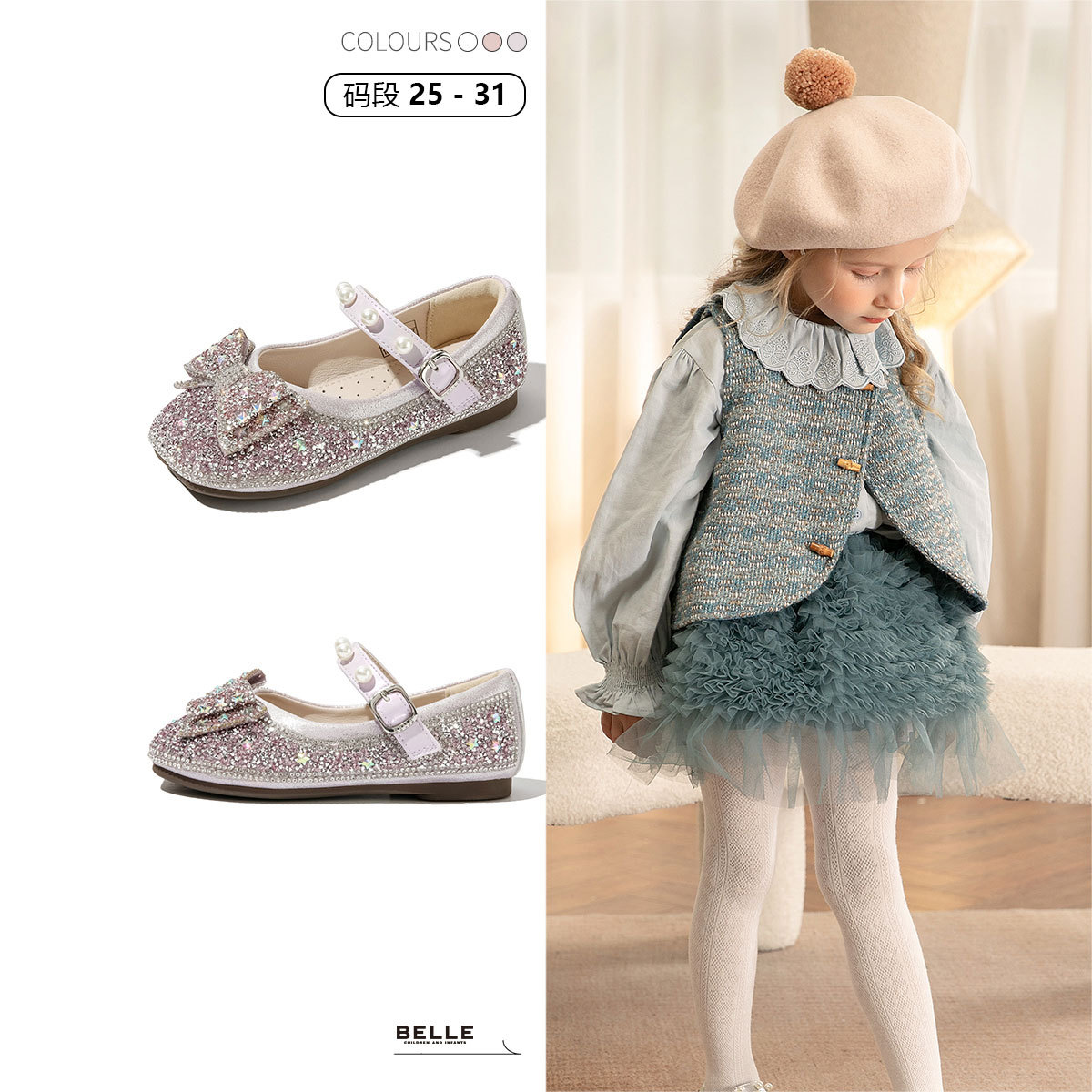 【彩钻珍珠蝴蝶结公主鞋】开学季春款女童皮鞋精致校园演出鞋单鞋 685259